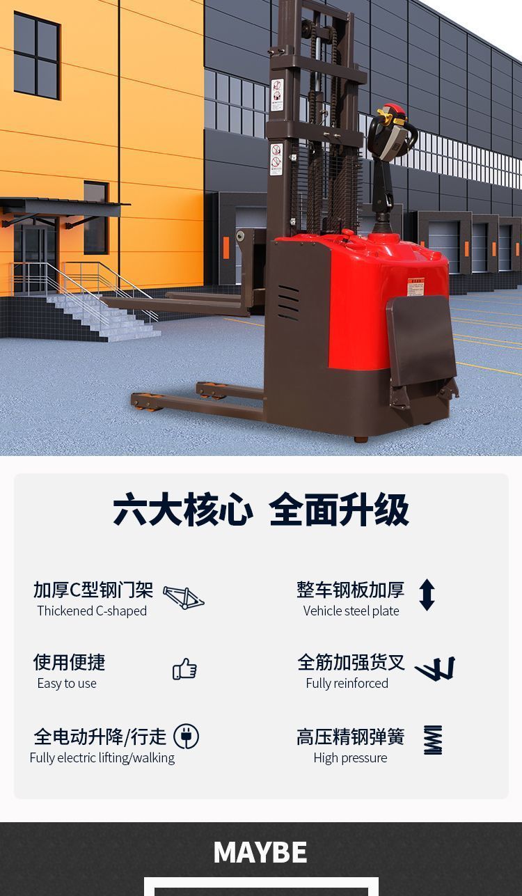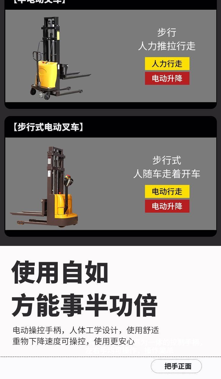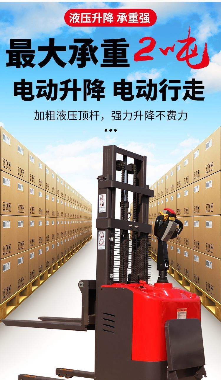 电动堆高车小型电动叉车1吨2吨全自动液压搬运车电瓶堆垛车升降车