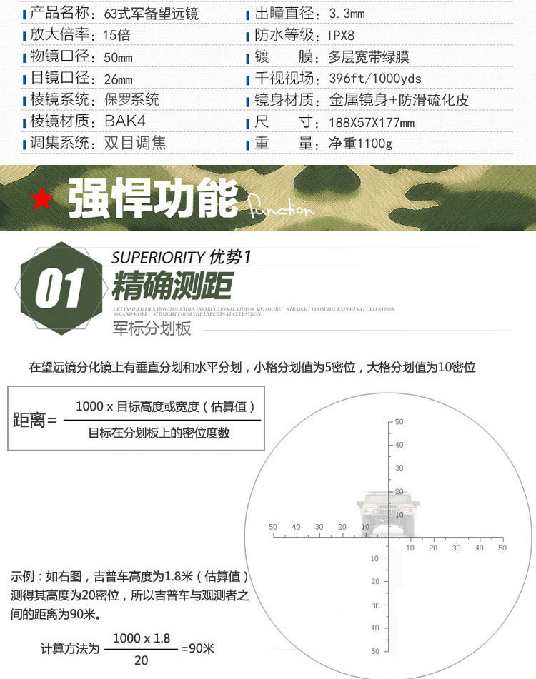 高倍率军事用侦查兵63式望远镜狙击手十字坐标瞄准镜高清专业级