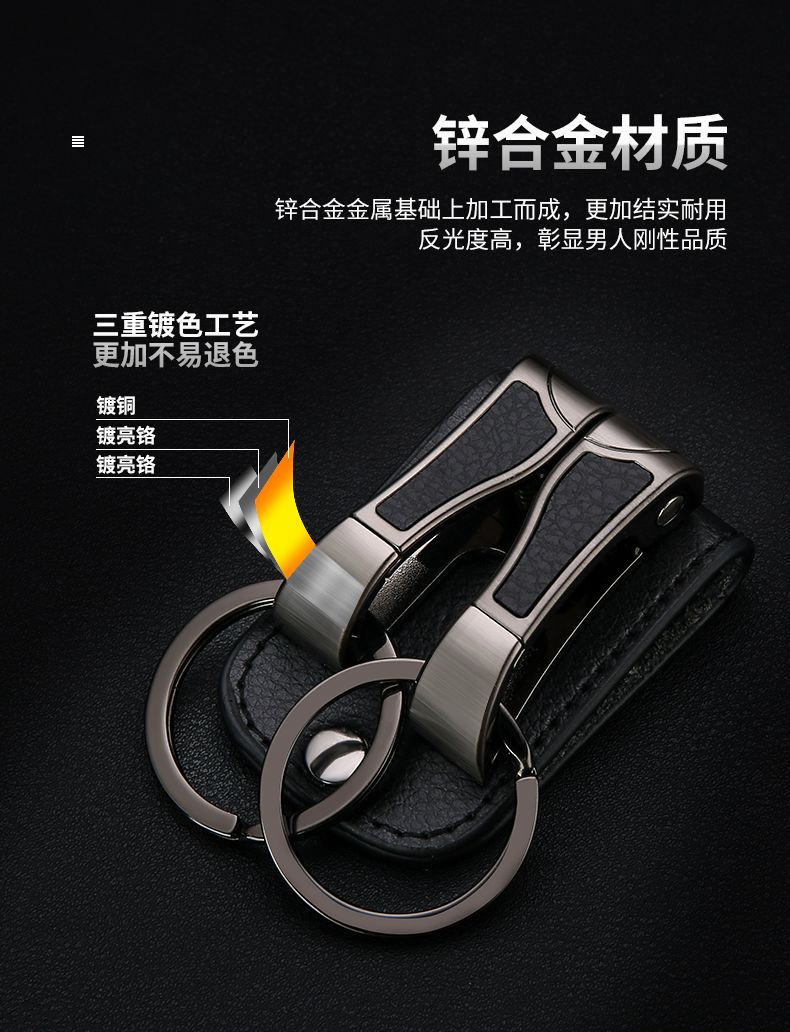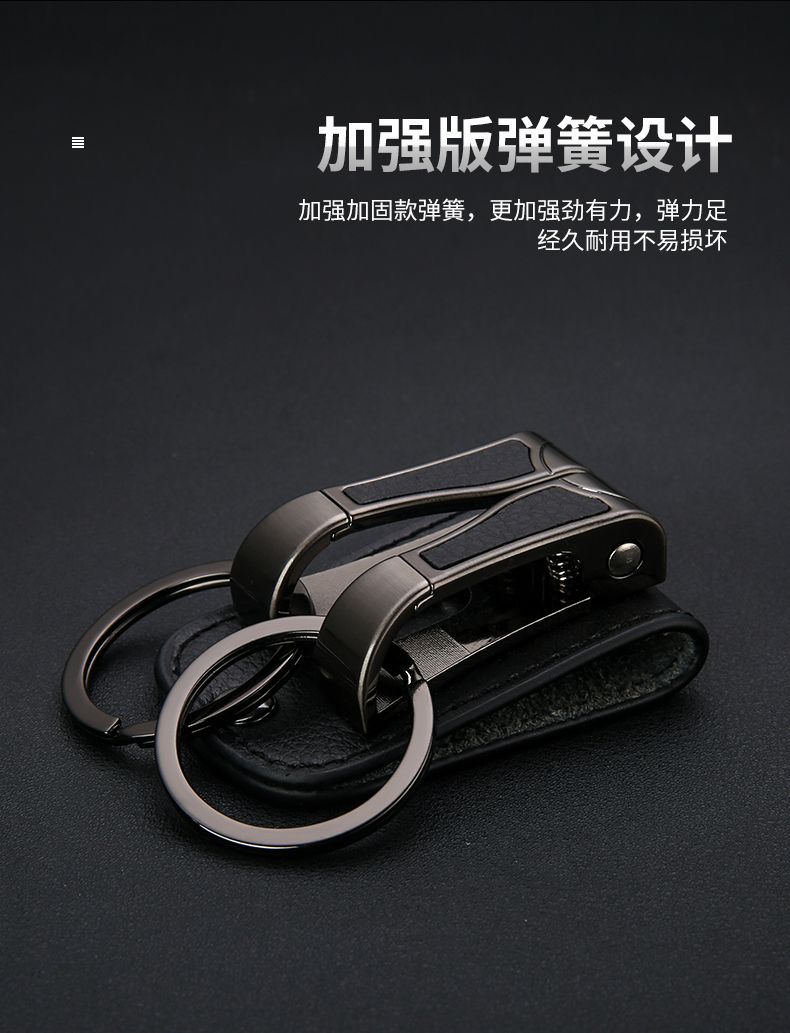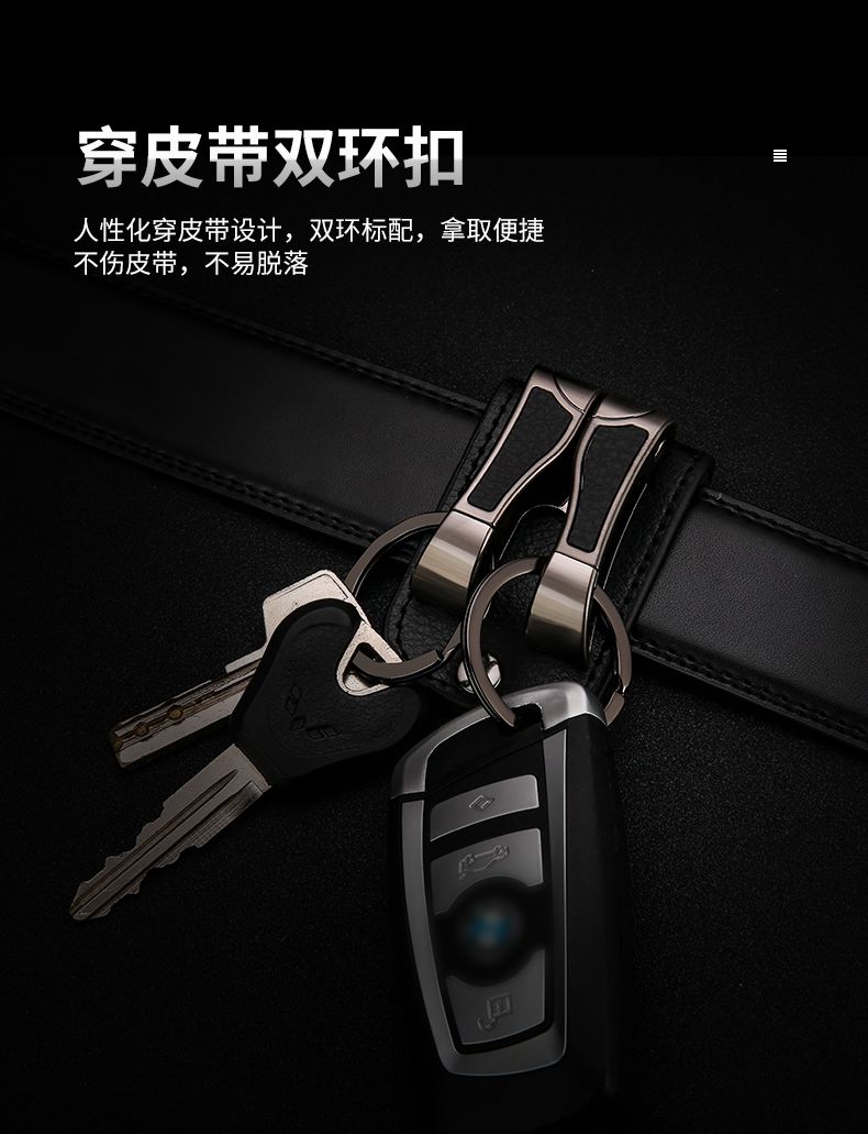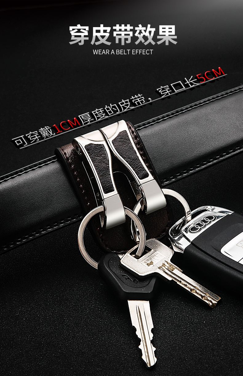 百诚网红牛皮钥匙扣穿皮带双排锁腰带挂男士汽车腰挂件创意双环圈