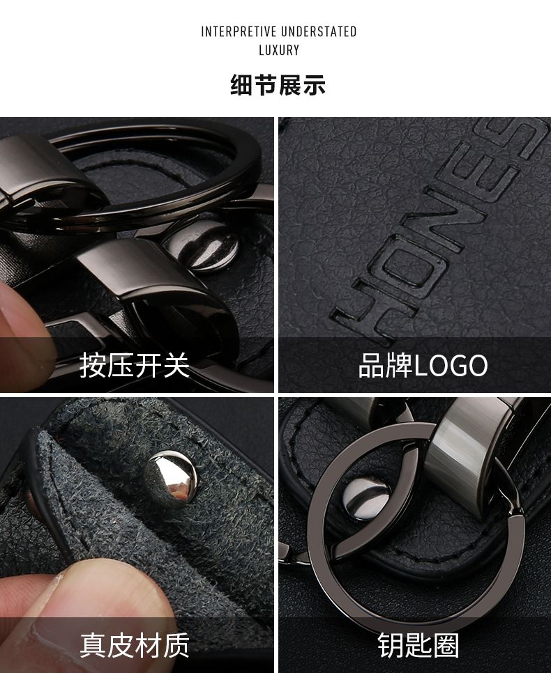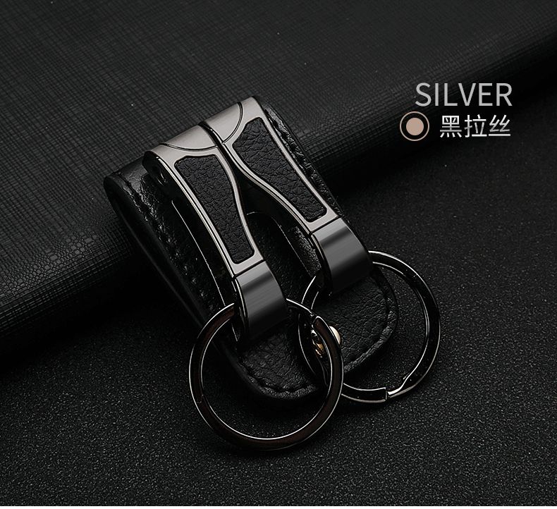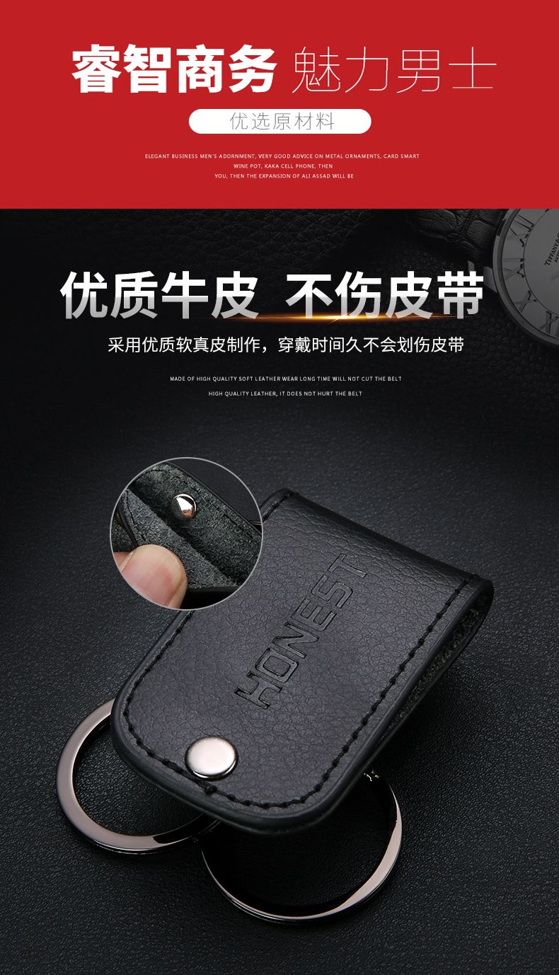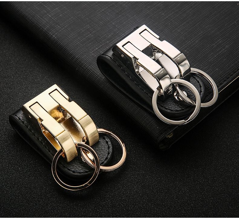 百诚网红牛皮钥匙扣穿皮带双排锁腰带挂男士汽车腰挂件创意双环圈