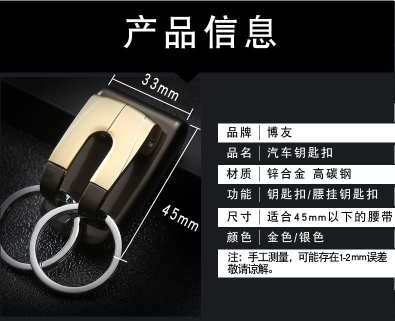 正品博友钥匙扣男腰挂穿皮带钥匙链 新款汽车钥匙圈环金属锁匙扣