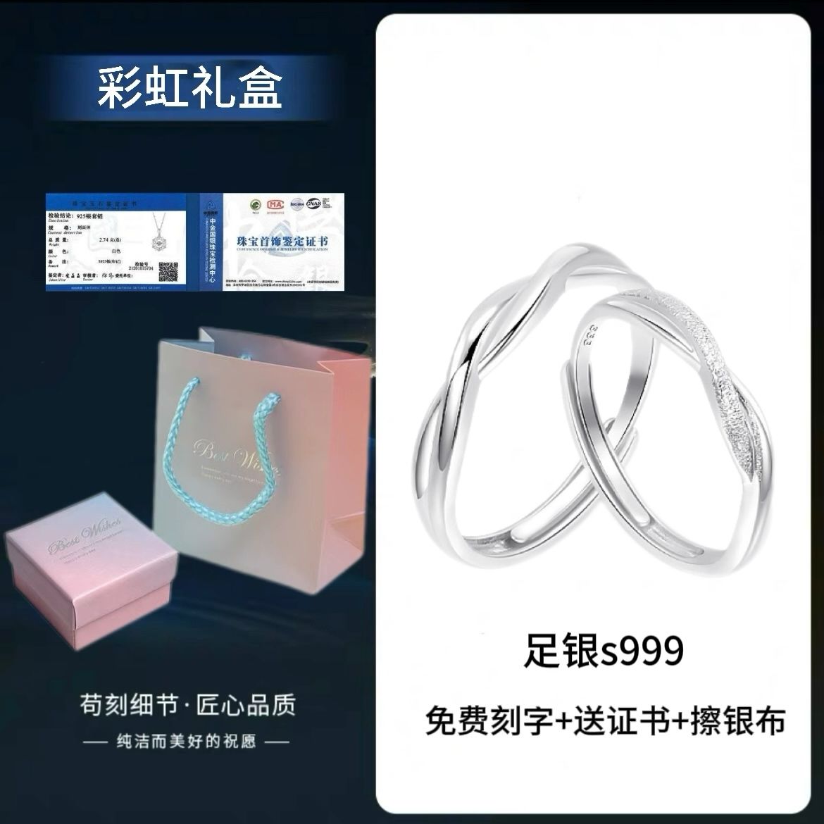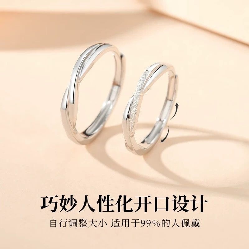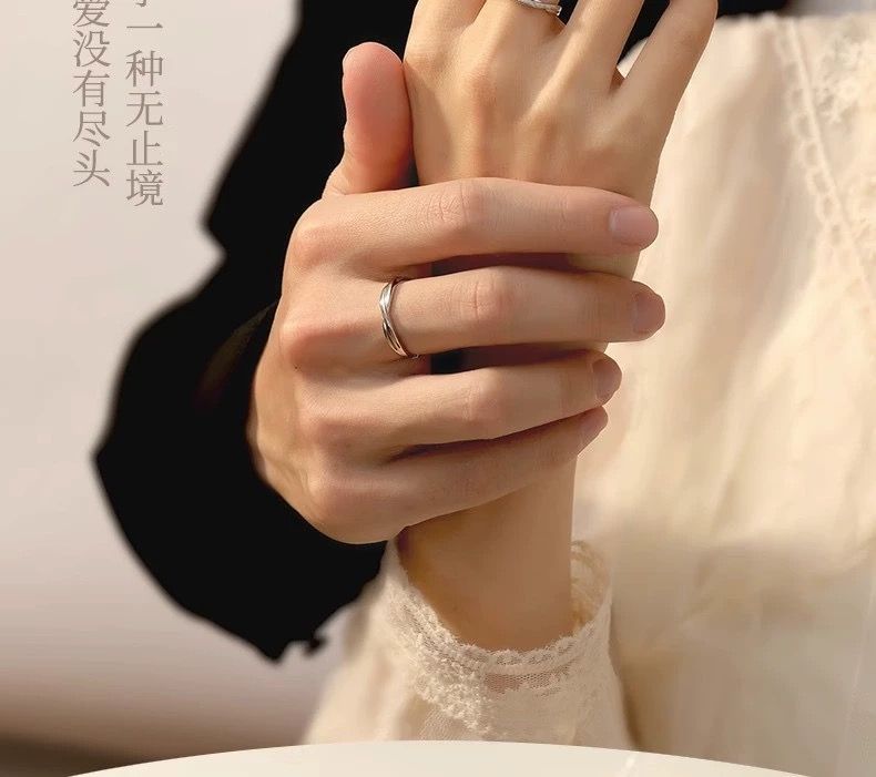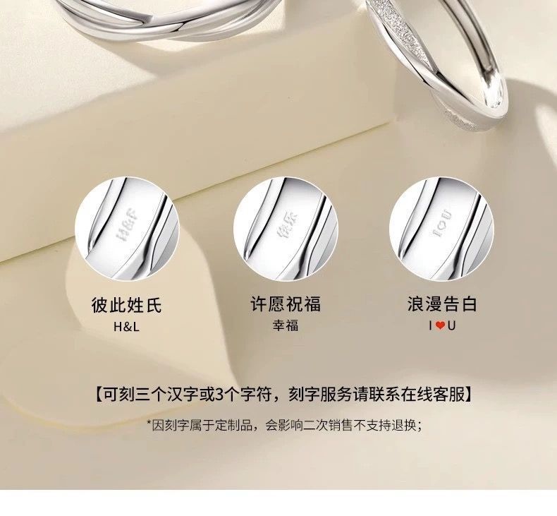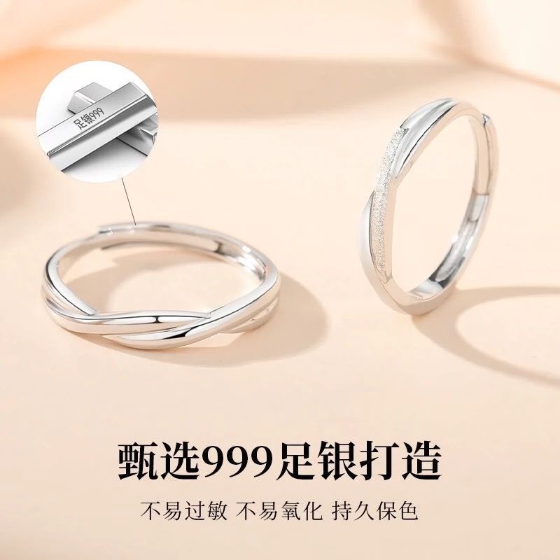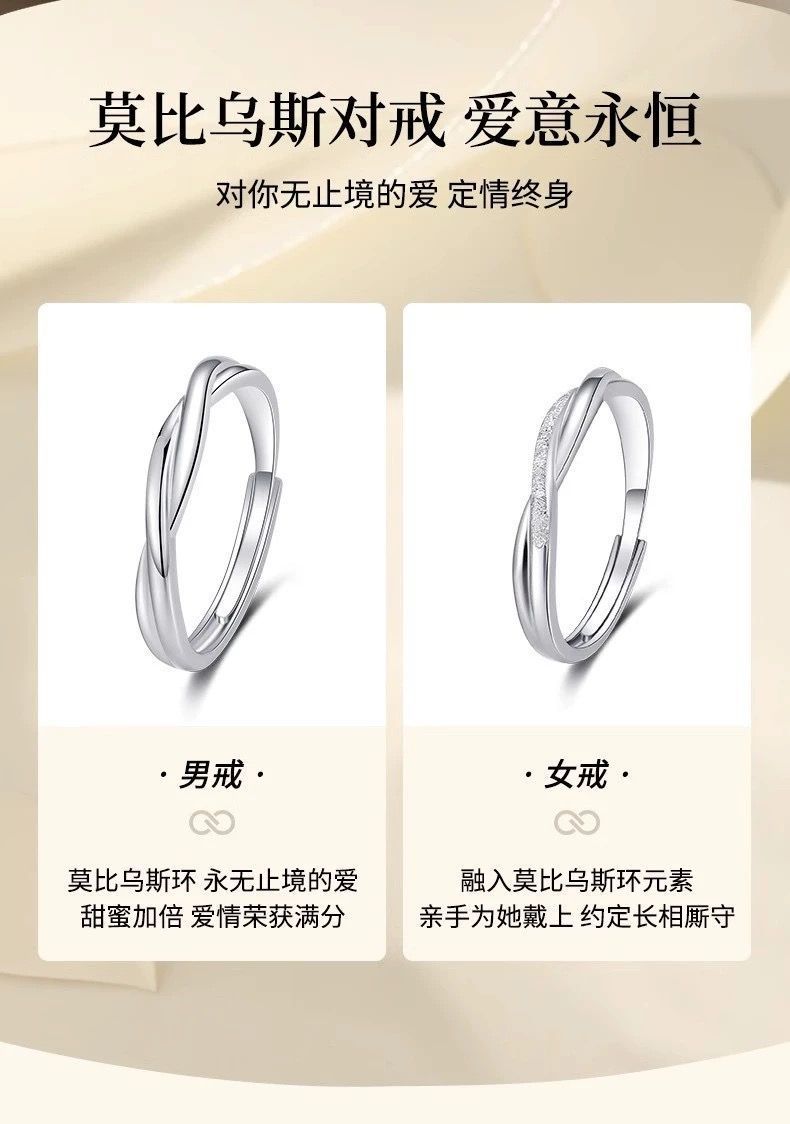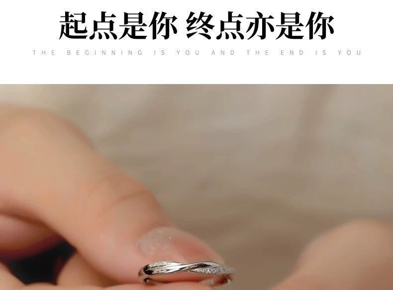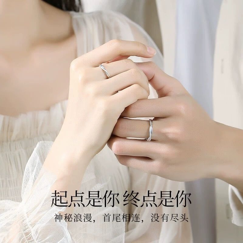 莫比乌斯环情侣对戒足银999小众设计素圈戒指刻字男女情人节礼物