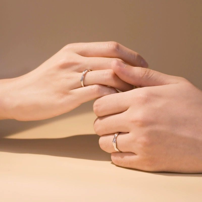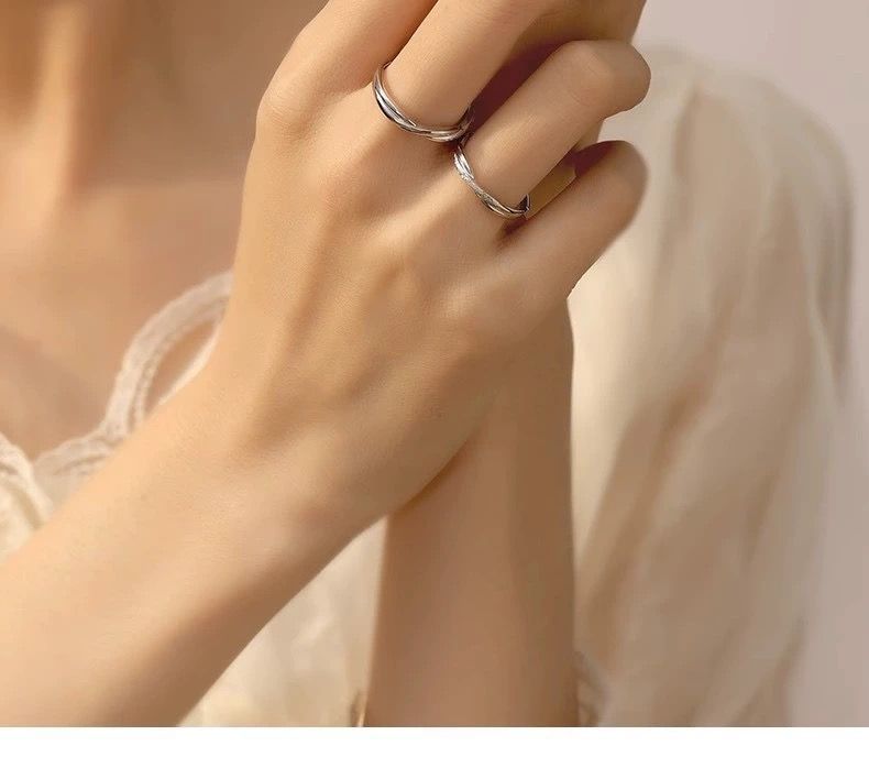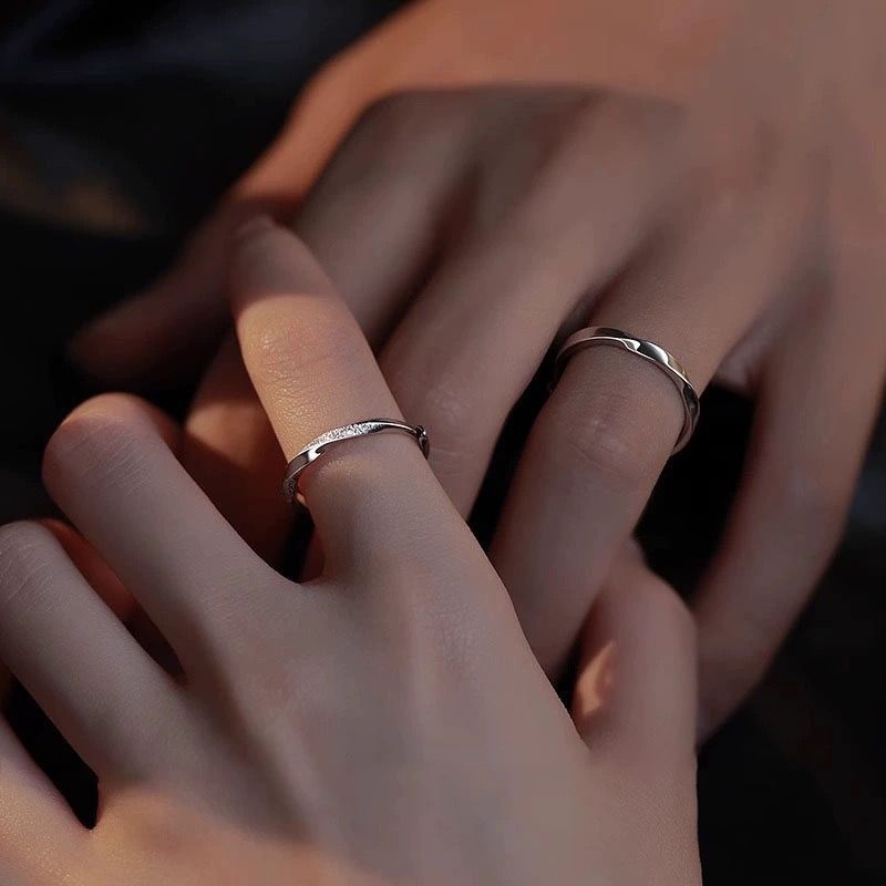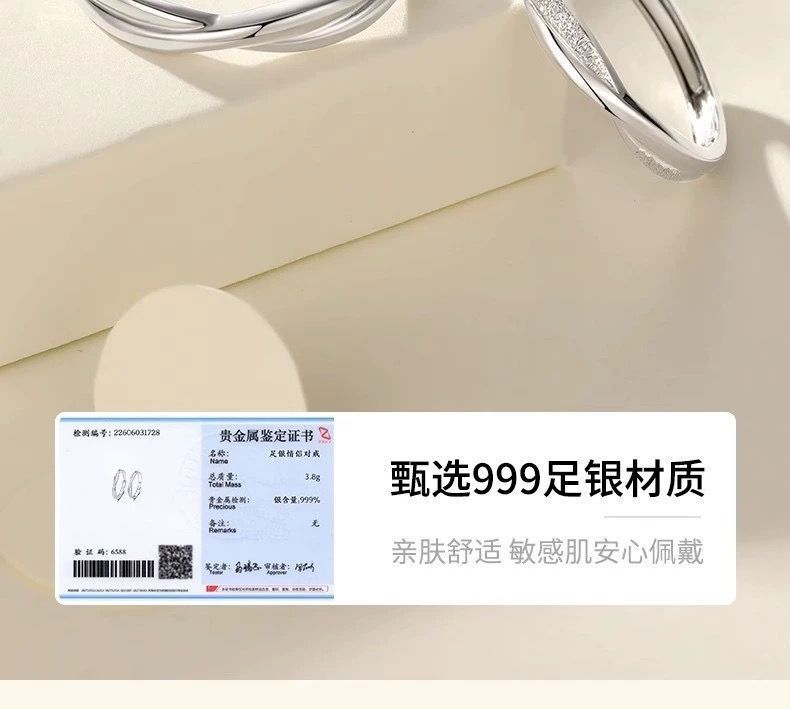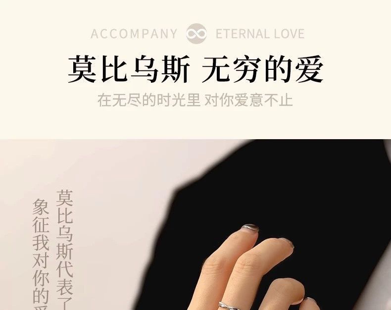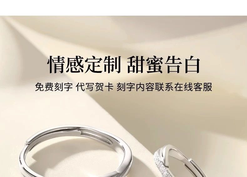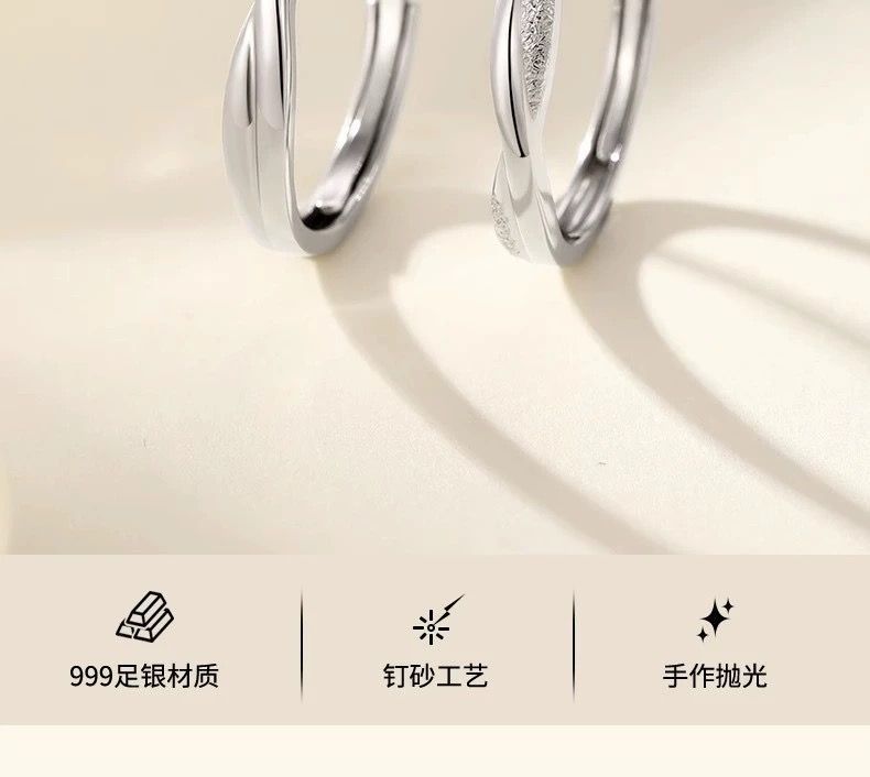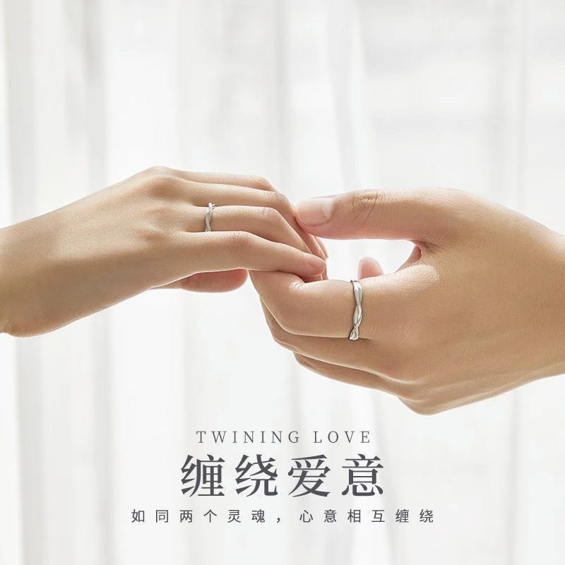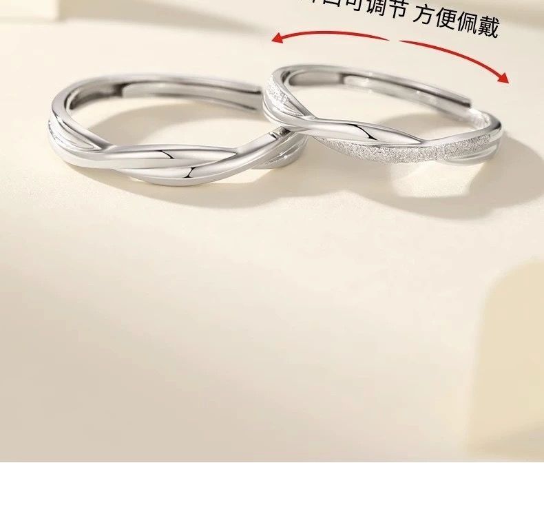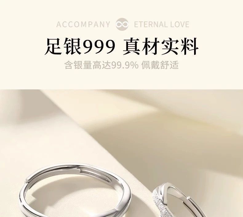莫比乌斯环情侣对戒足银999小众设计素圈戒指刻字男女情人节礼物