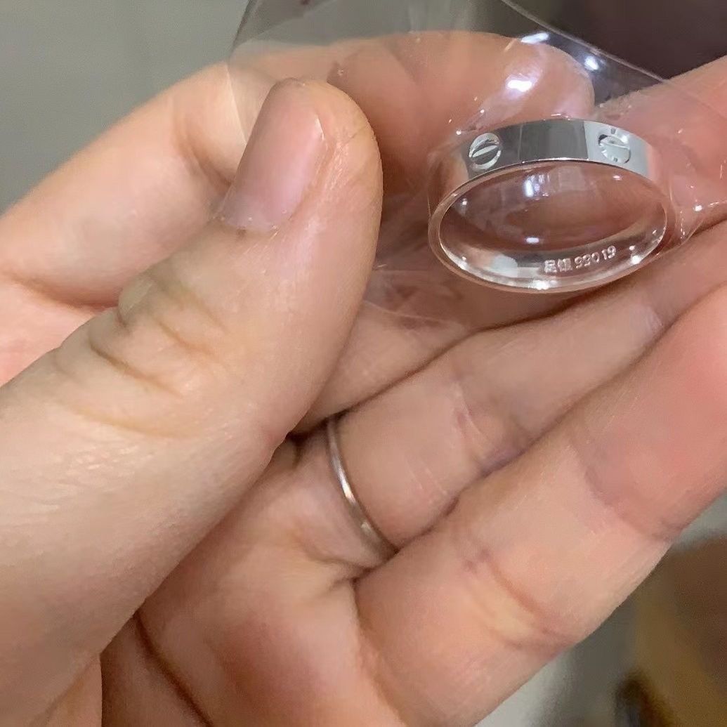 999纯银情侣车花戒指男女士小素圈简单时尚个性ins小众设计潮对戒