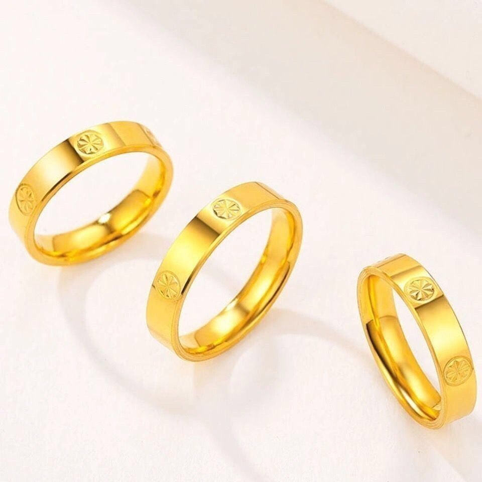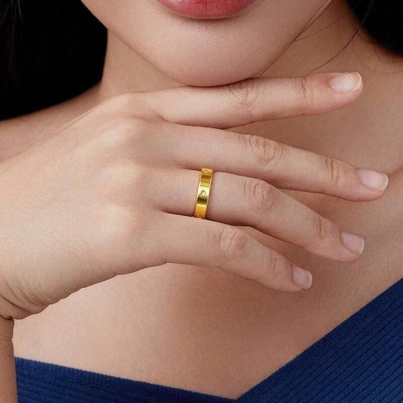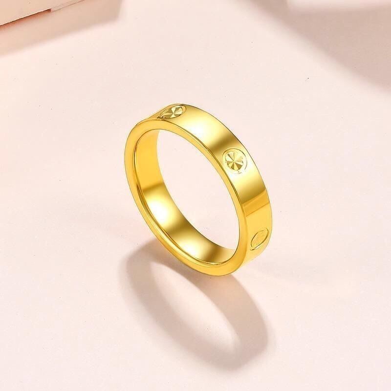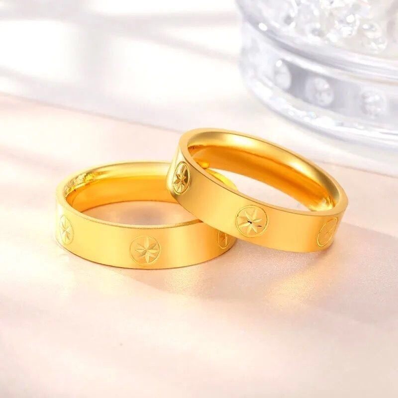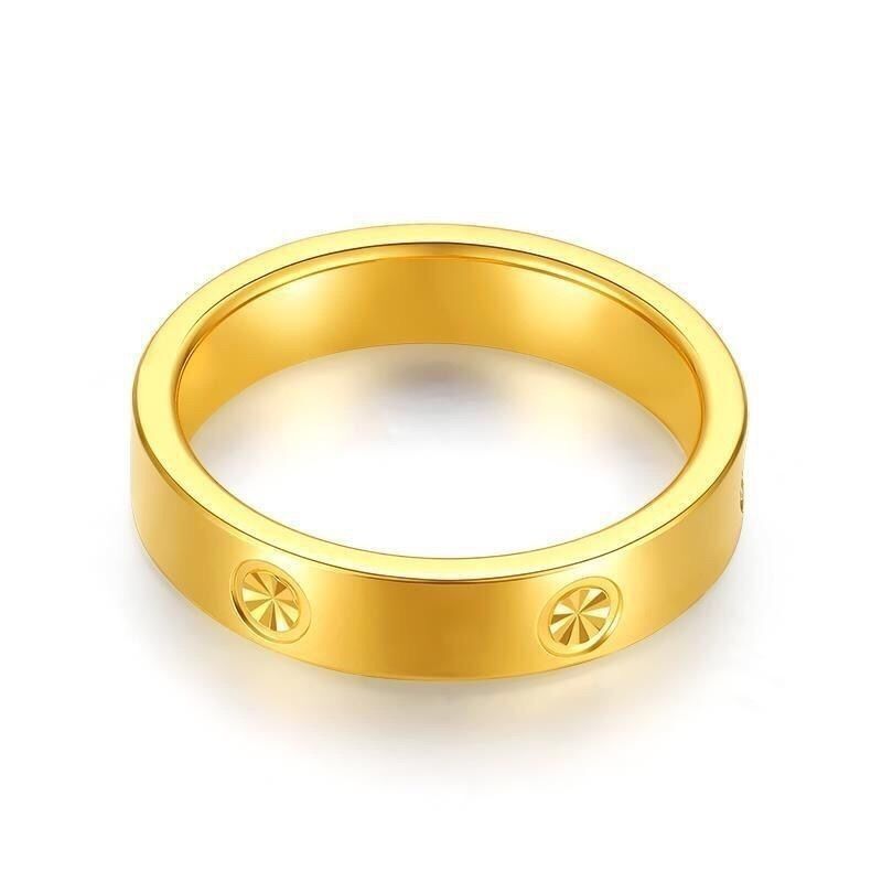 黄金色光面钻纹戒指时尚简约光面素圈指环情侣对戒高级时尚送礼