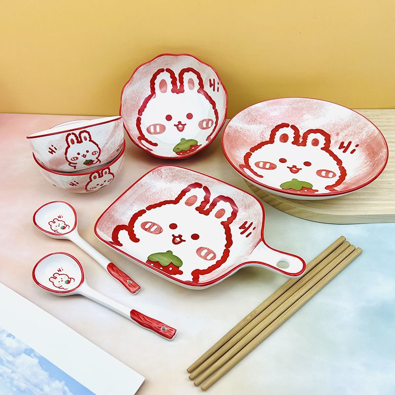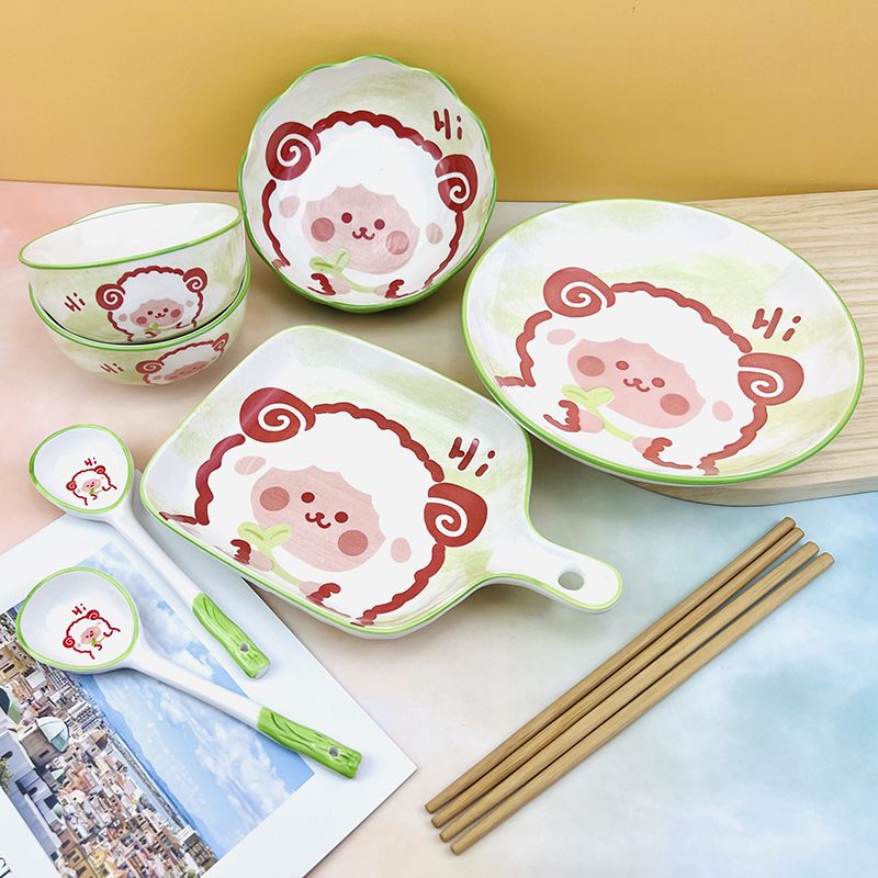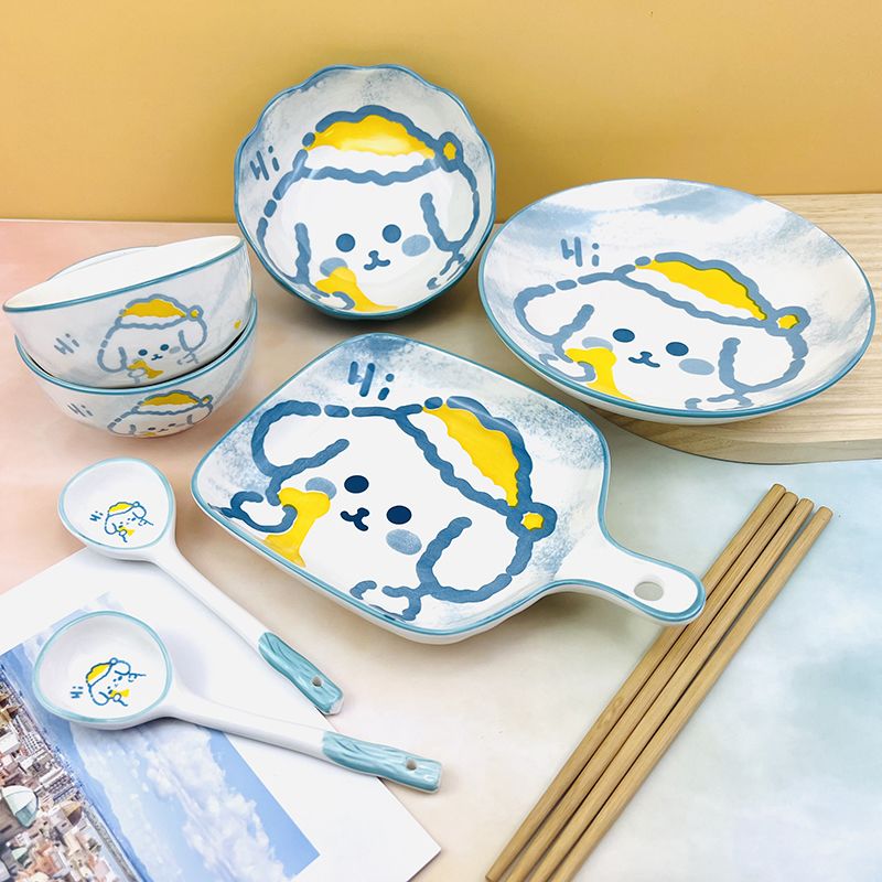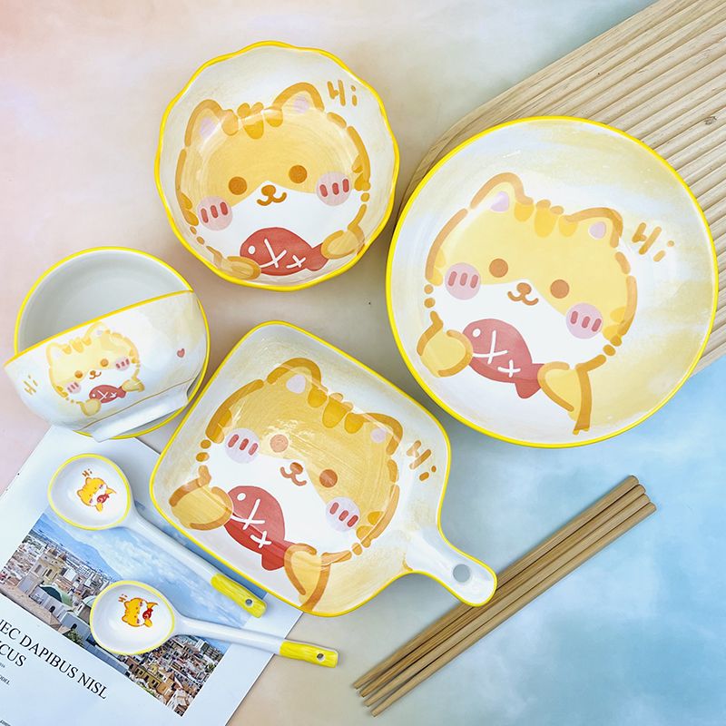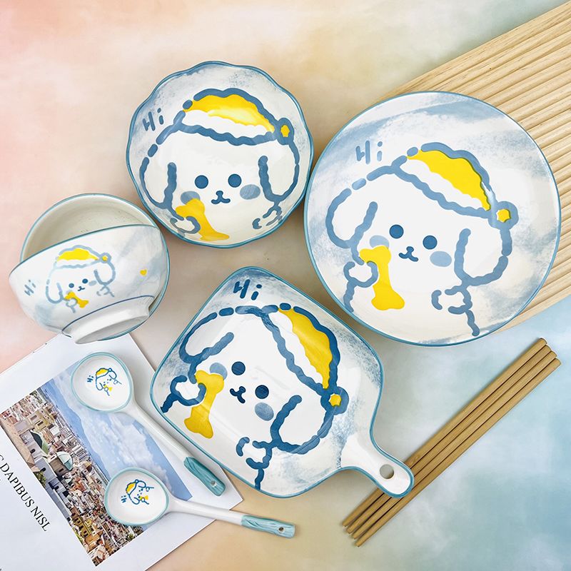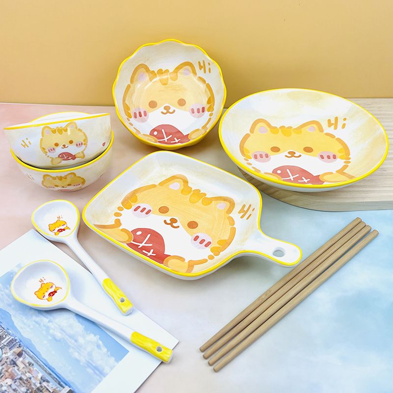 可爱卡通陶瓷餐具一人食套装创意家用碗盘烤箱微波炉专用烤盘烤碗