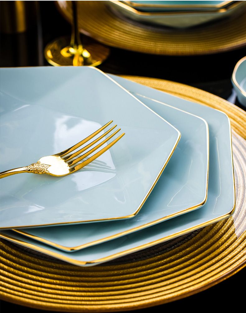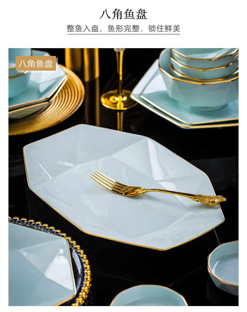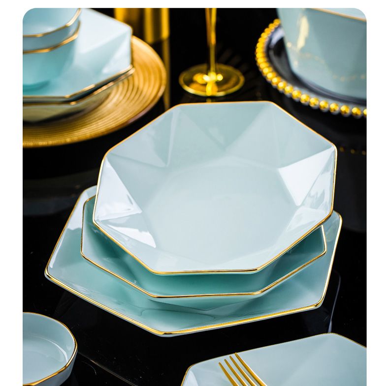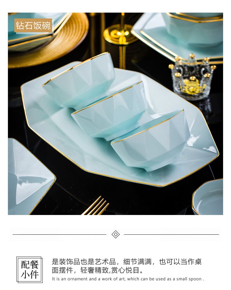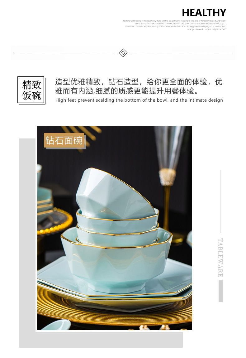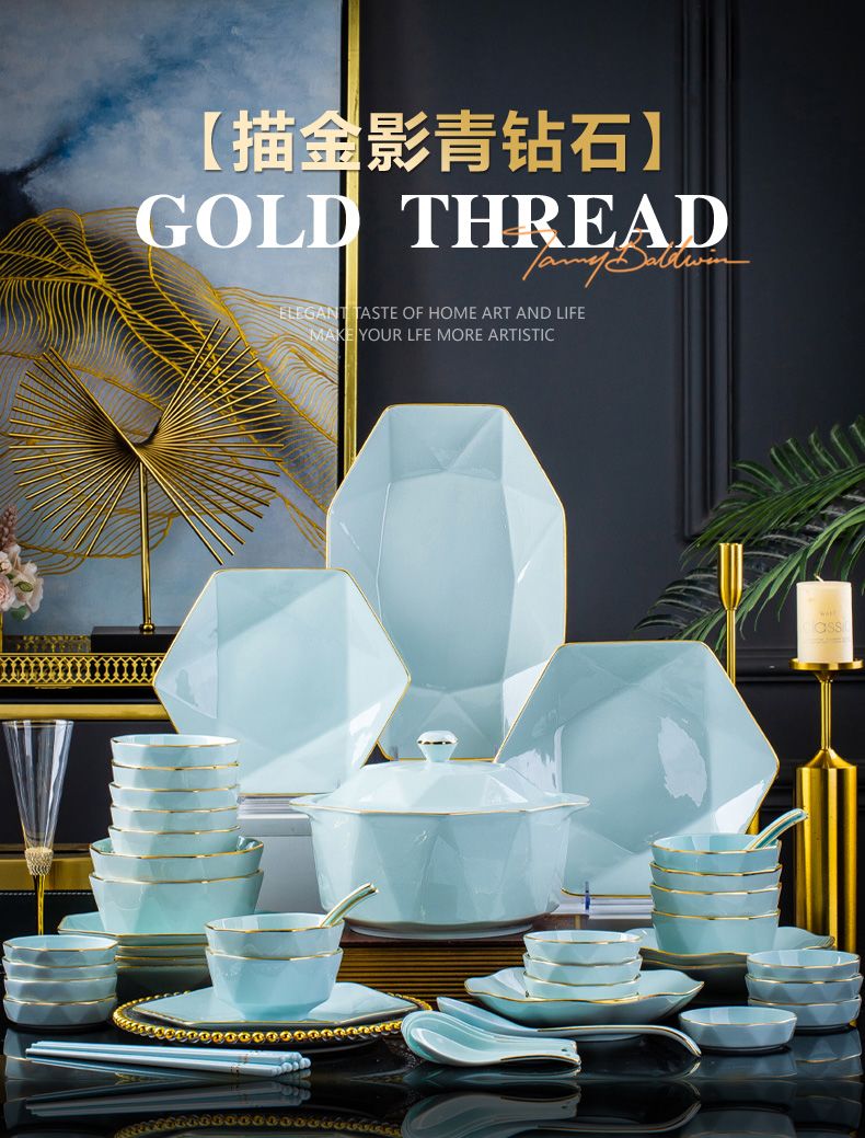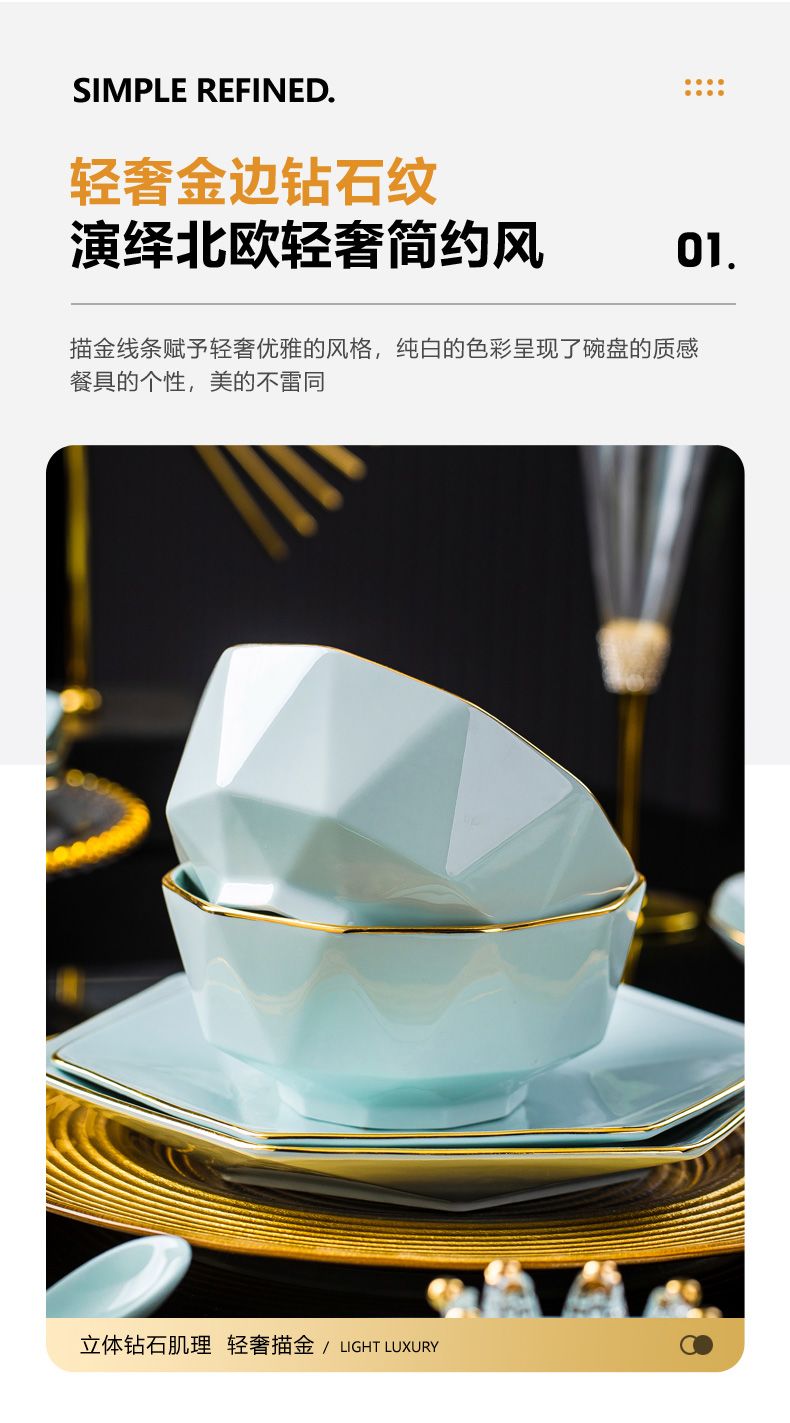 北欧金边钻石碗碟套装ins风轻奢网红款简约家用陶瓷餐具礼品套装
