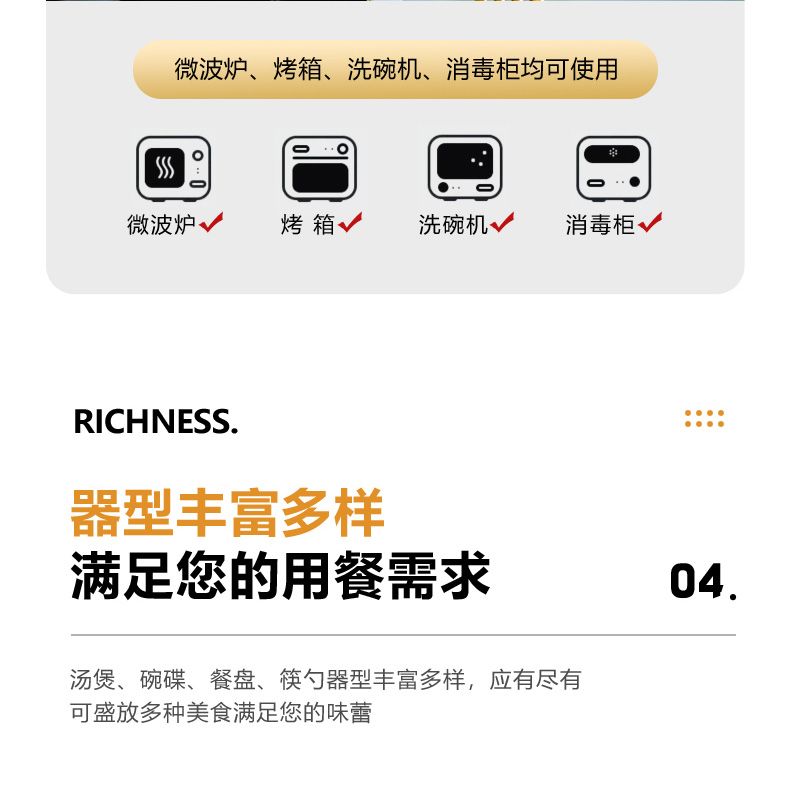| 12-person food light luxury family pack 60-piece set(12人食轻奢家庭装60件套) | USD $75.3 | 99999 piece available |