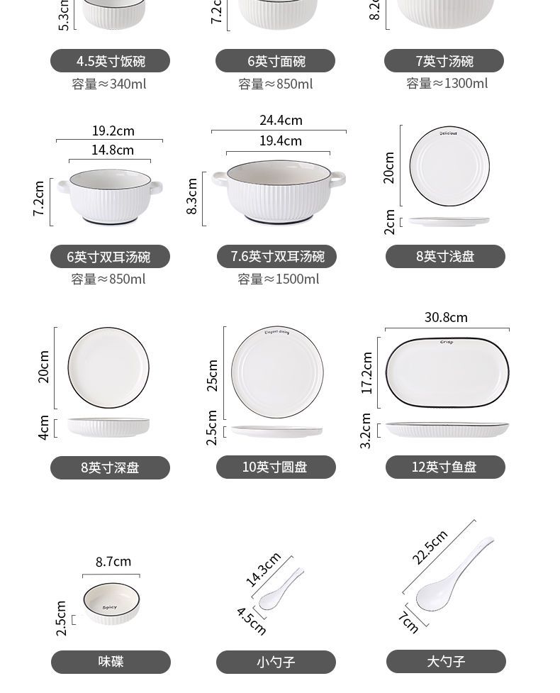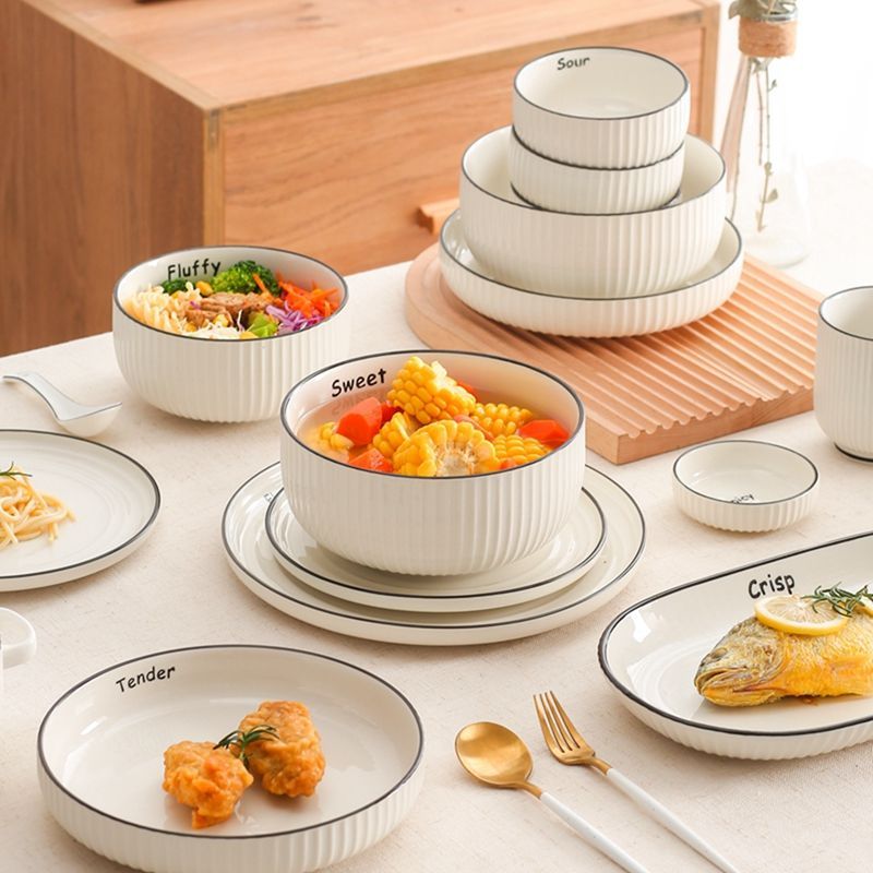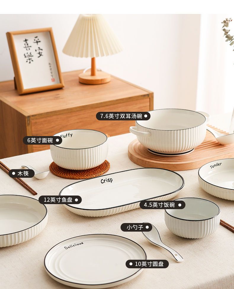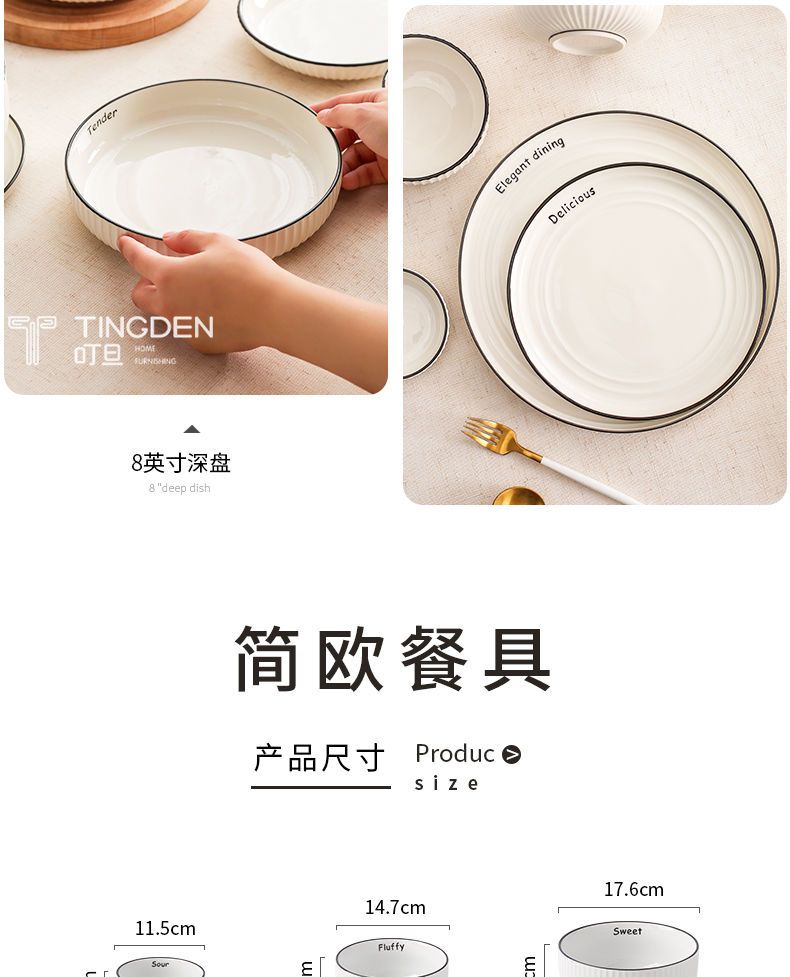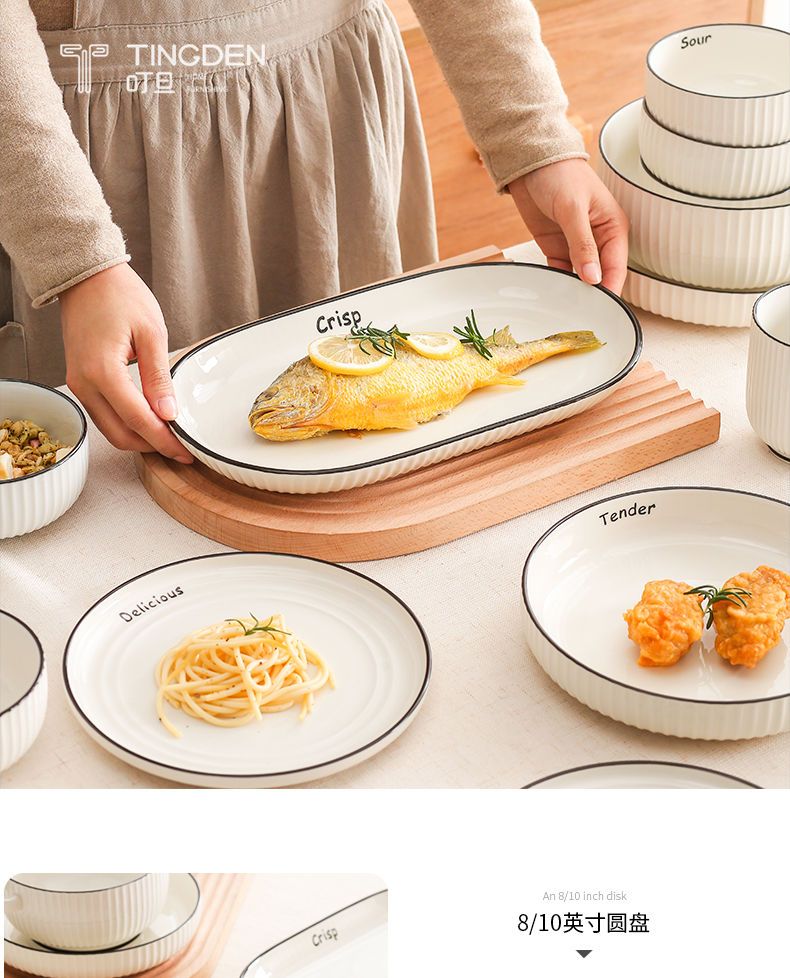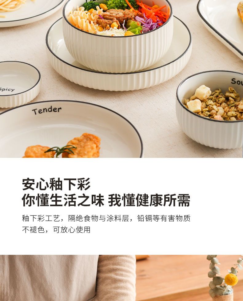 北欧碗碟盘套装高颜值碗盘鱼盘陶瓷餐具釉下彩盘子菜盘碟子大汤碗