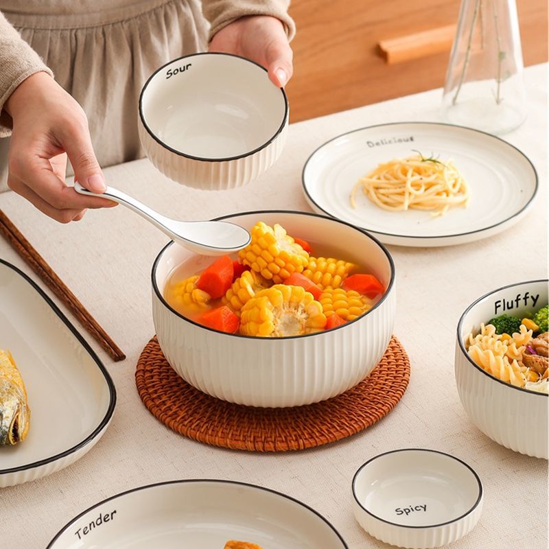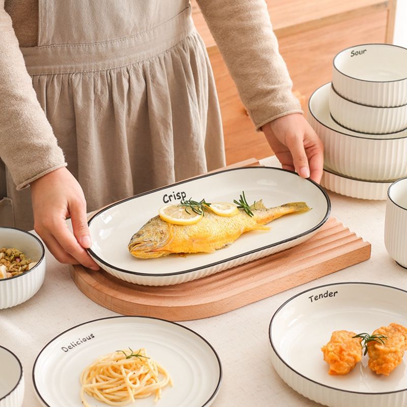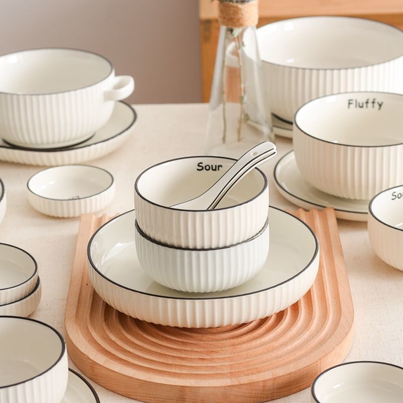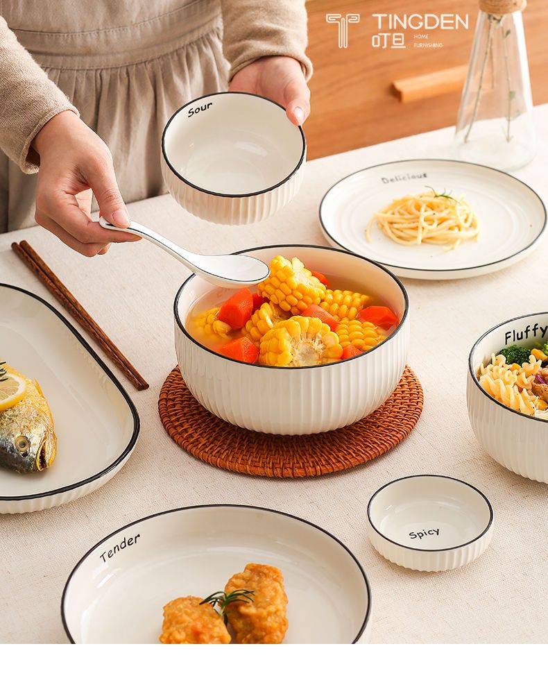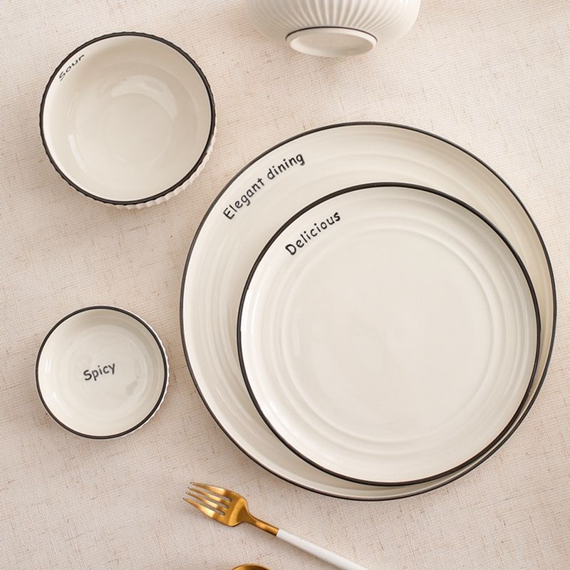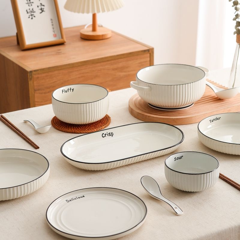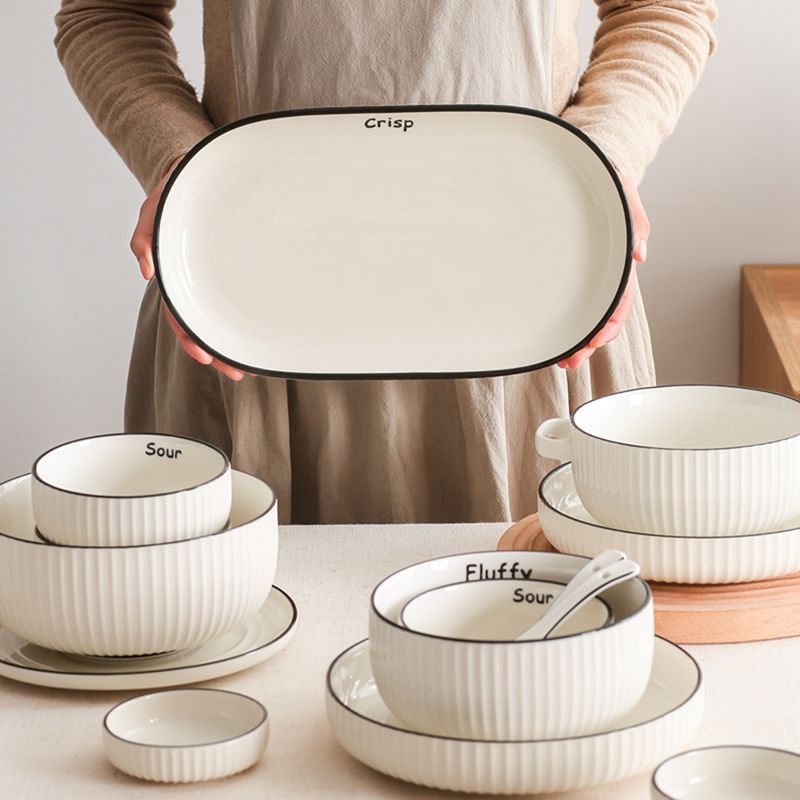 北欧碗碟盘套装高颜值碗盘鱼盘陶瓷餐具釉下彩盘子菜盘碟子大汤碗