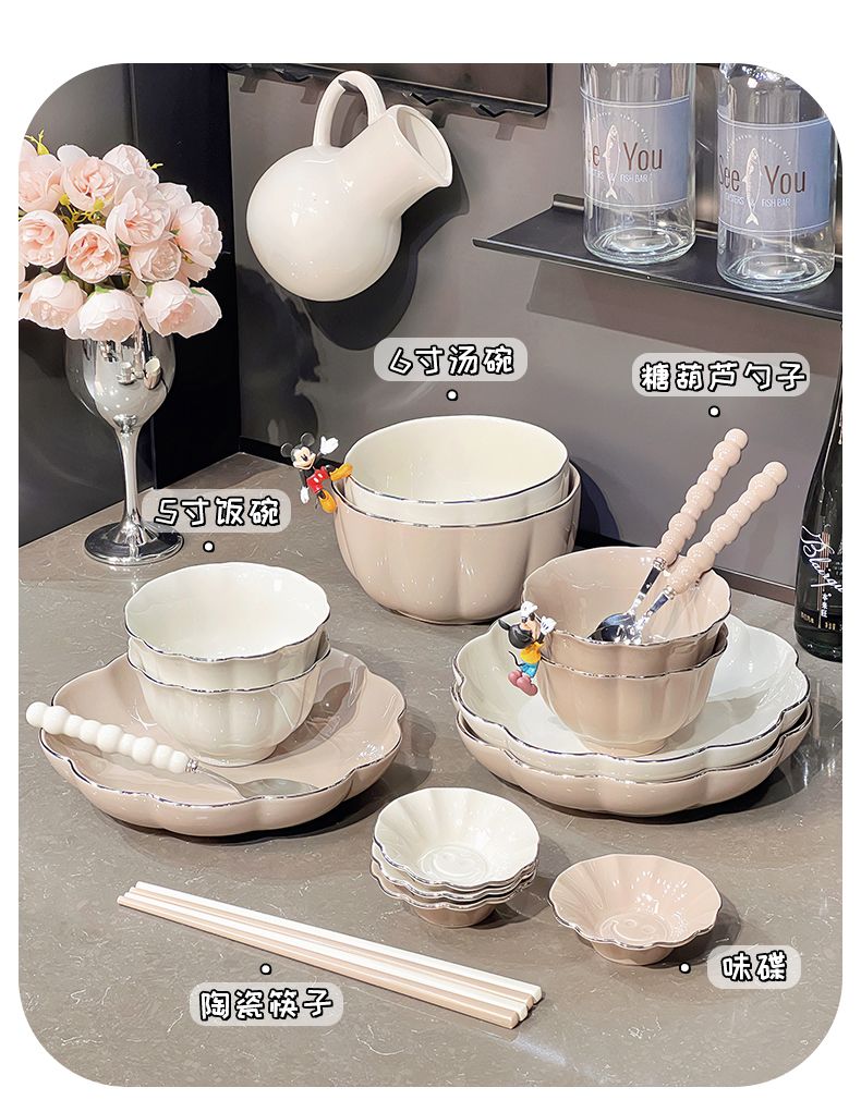 高颜值碗碟套装家用2023新款碗盘子组合轻奢陶瓷碗筷餐具高级感