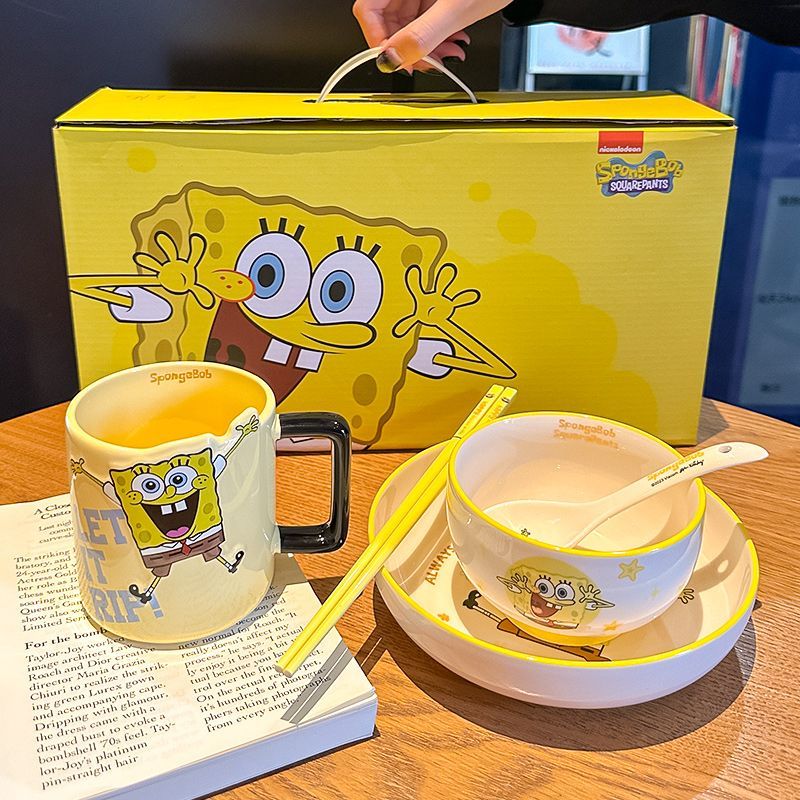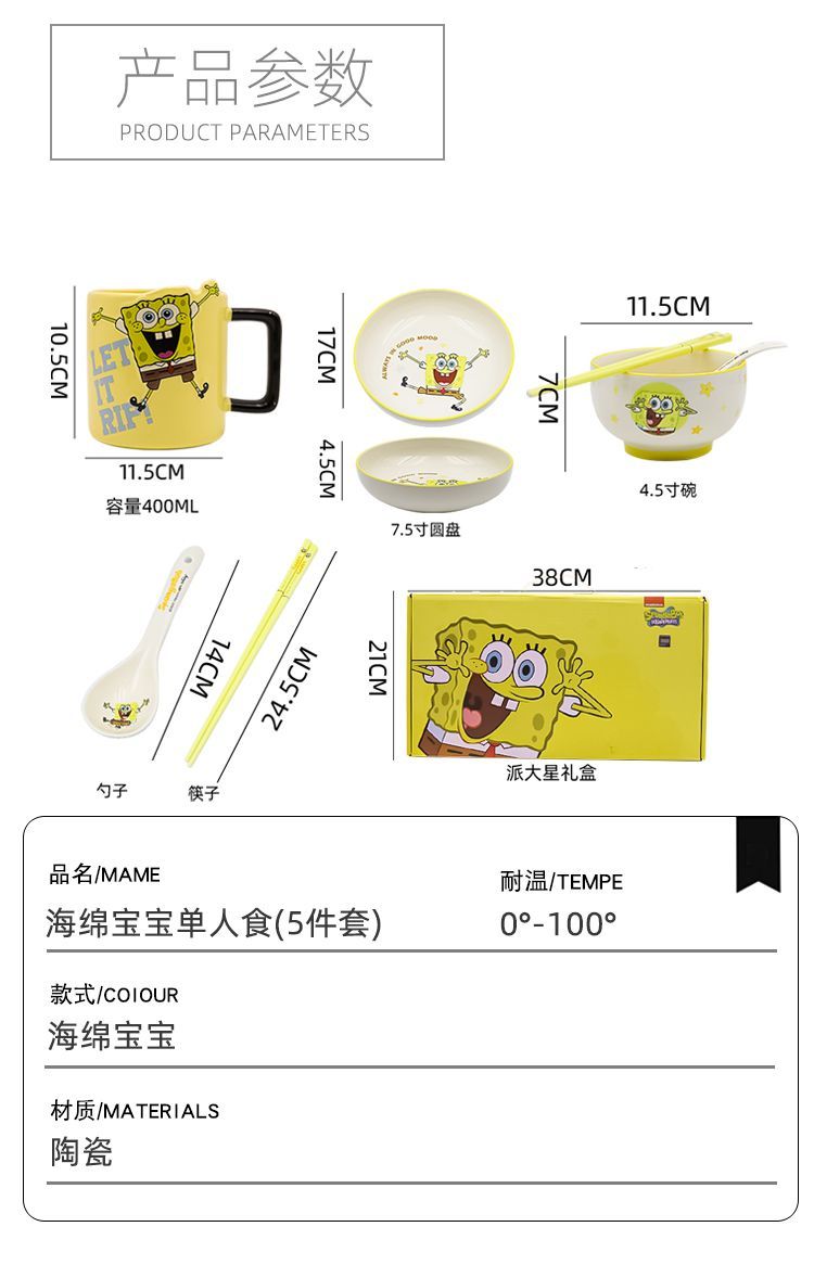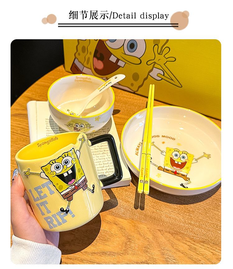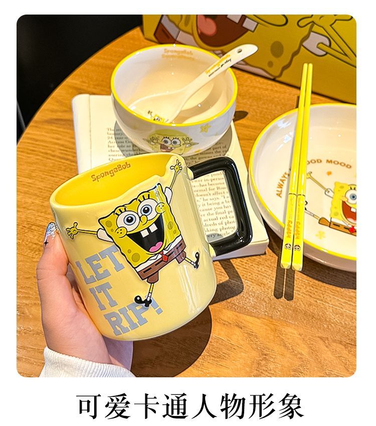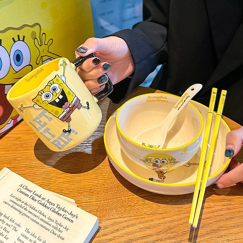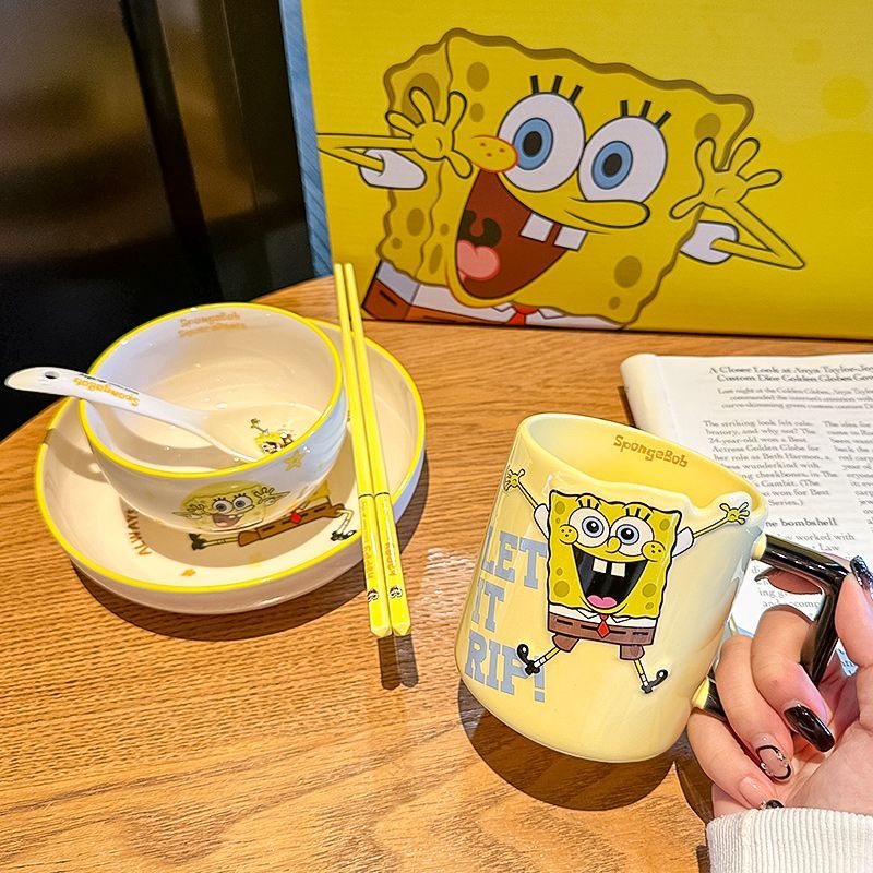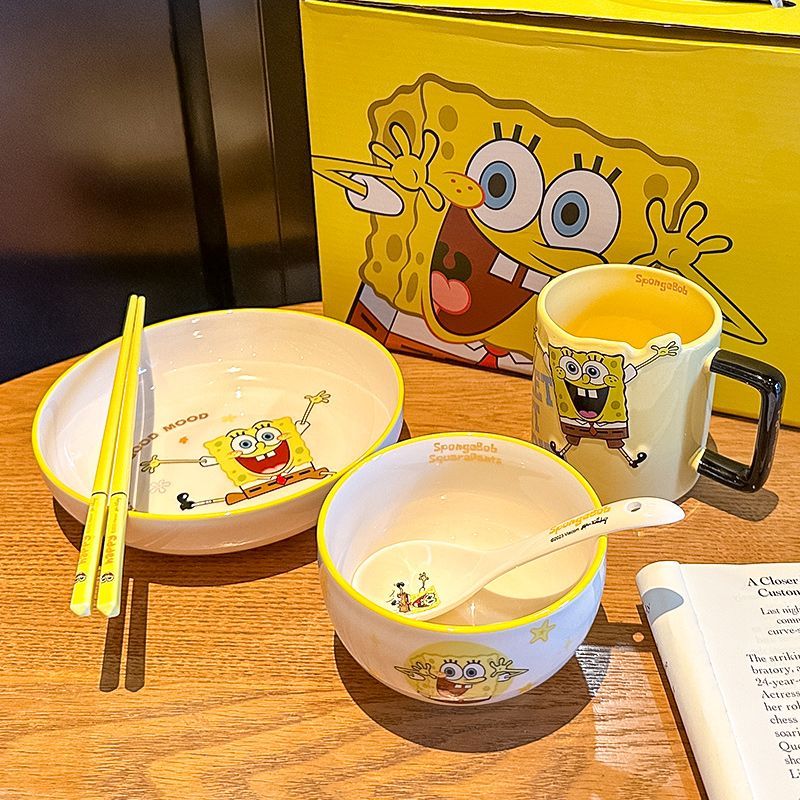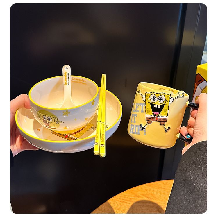 可爱陶瓷碗盘套装高颜值海绵宝宝餐具碗碟组合单人食家用饭碗整套