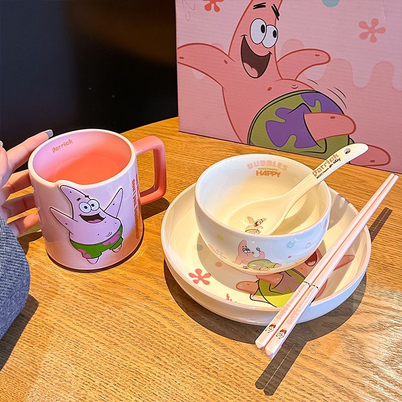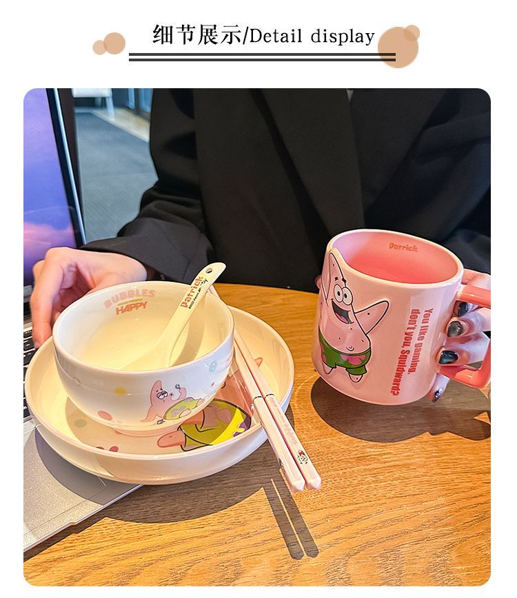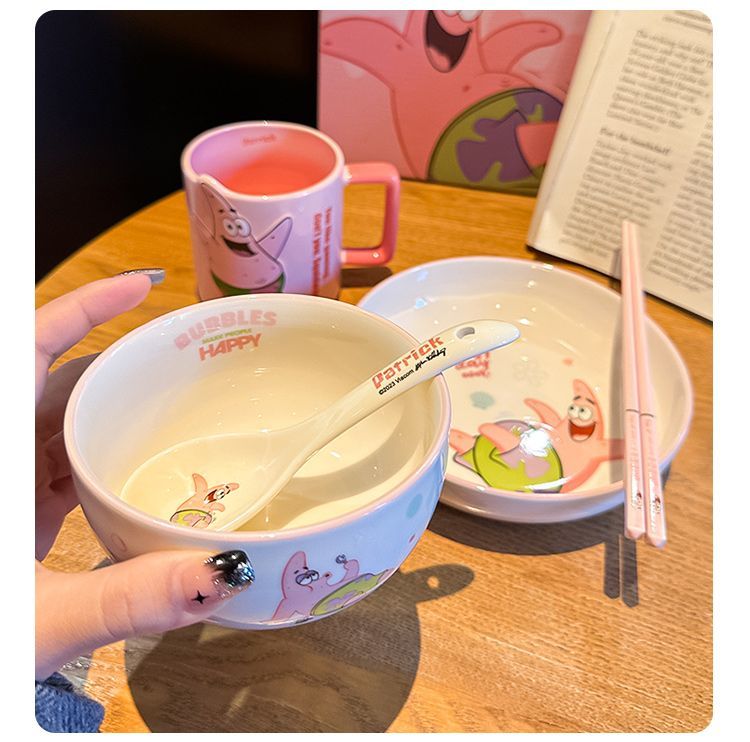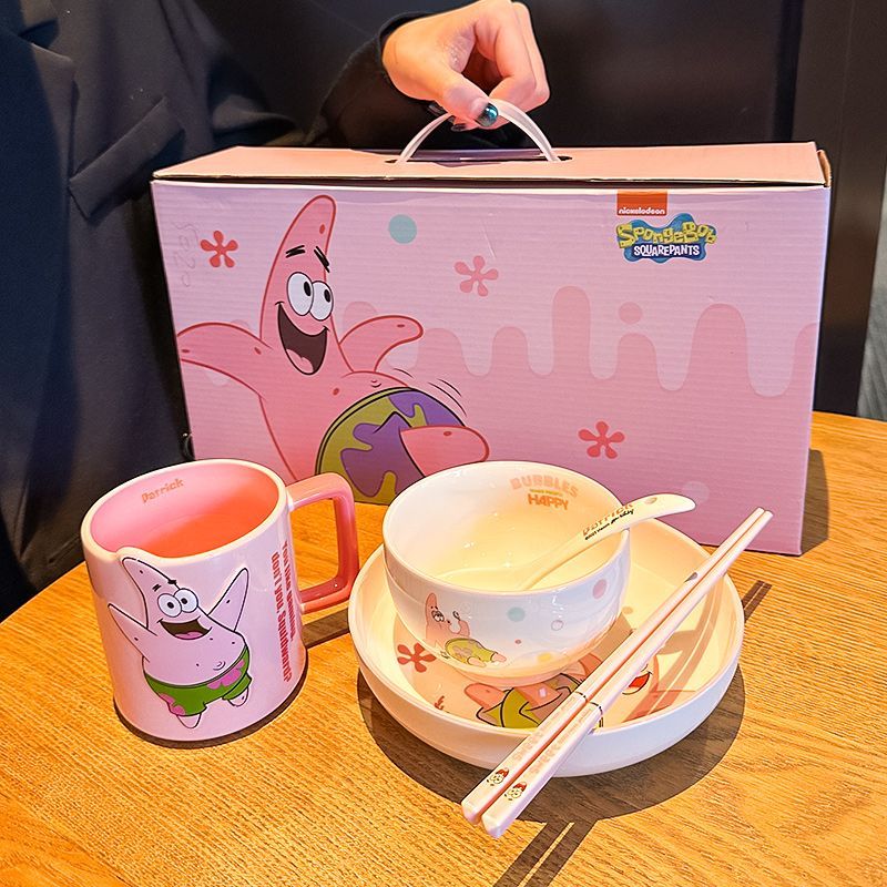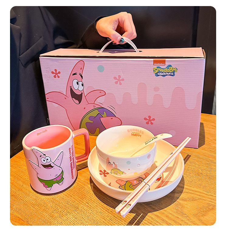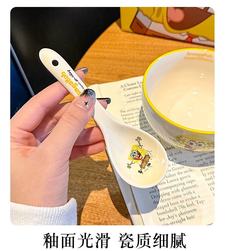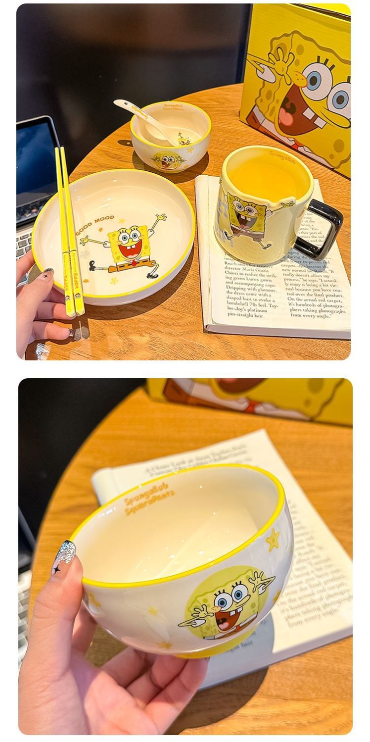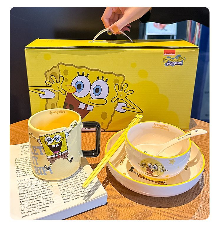 可爱陶瓷碗盘套装高颜值海绵宝宝餐具碗碟组合单人食家用饭碗整套