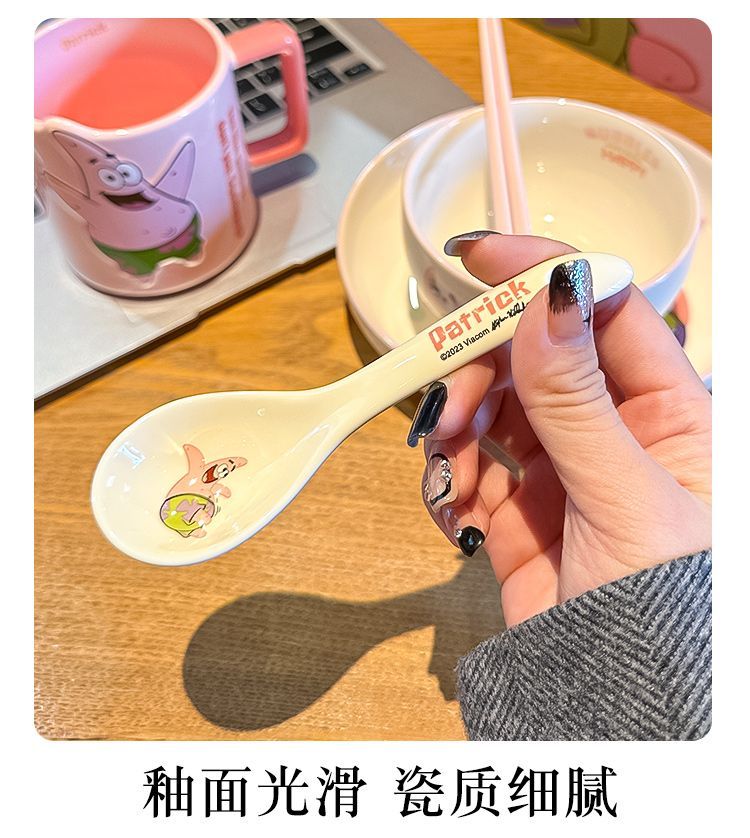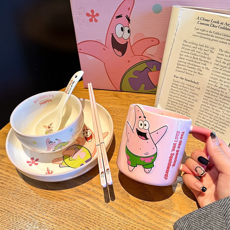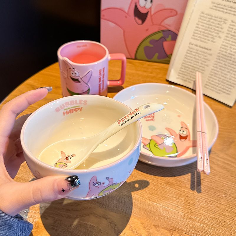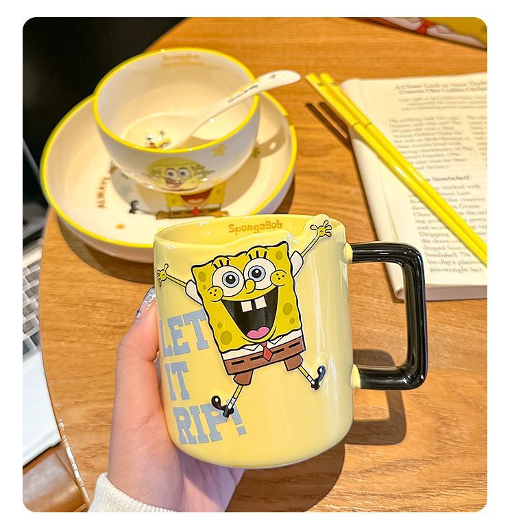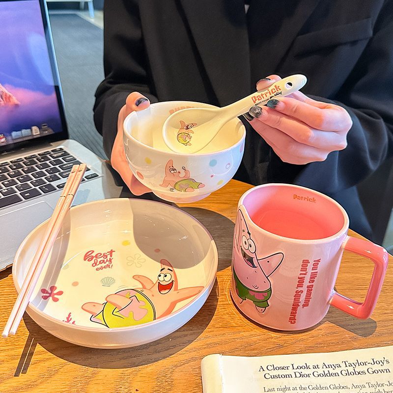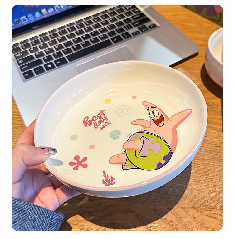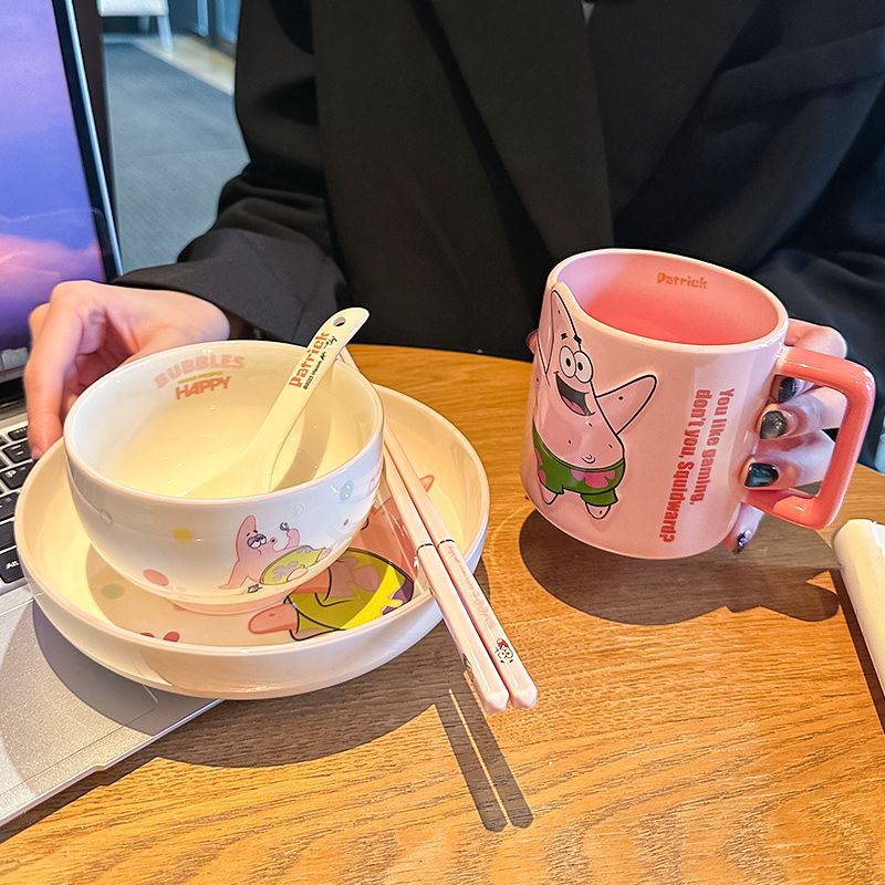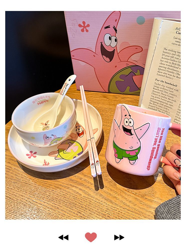 可爱陶瓷碗盘套装高颜值海绵宝宝餐具碗碟组合单人食家用饭碗整套