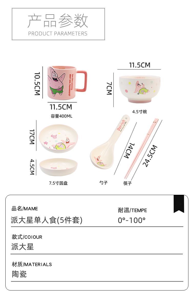 | [officially authorized] single food bowl + cup + plate + chopsticks + spoon(【正版授权】单人食碗+杯+盘+筷+勺) | USD $14.49 | 99999 piece available |