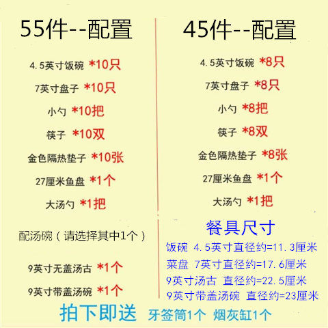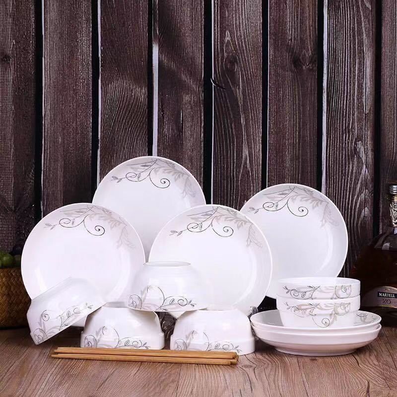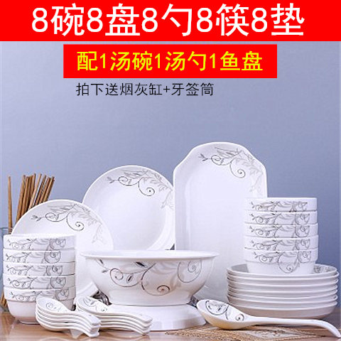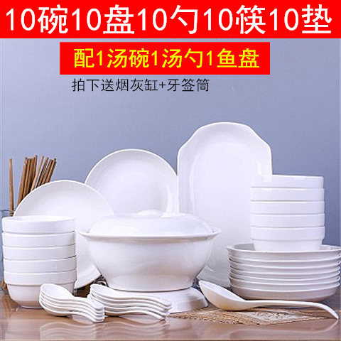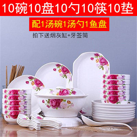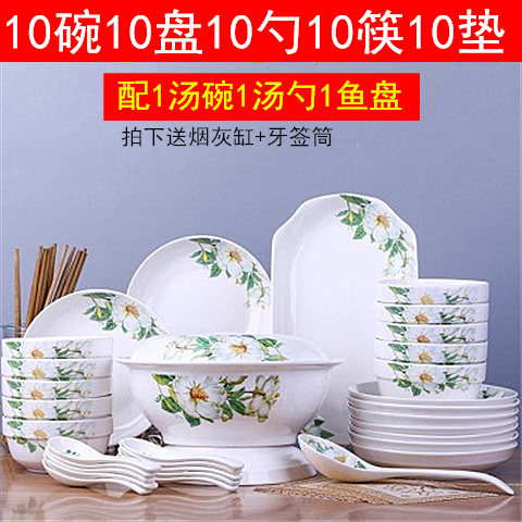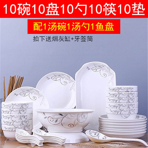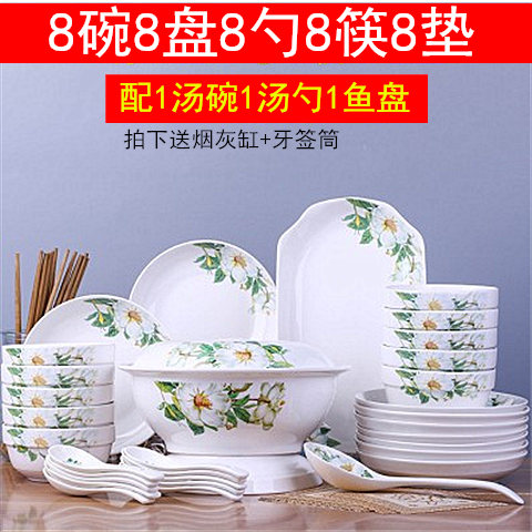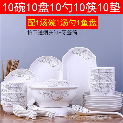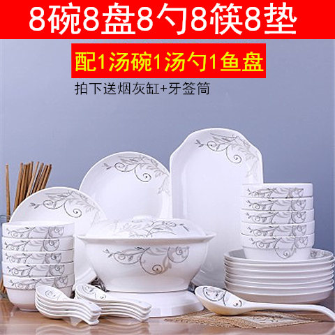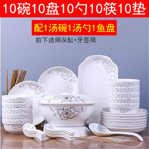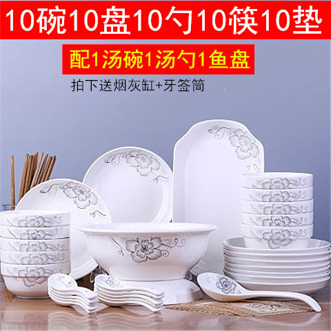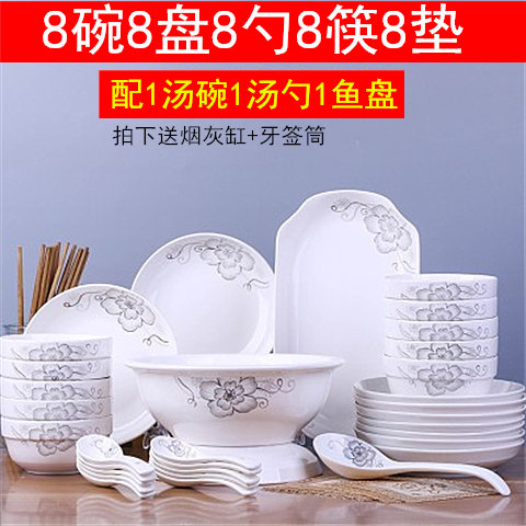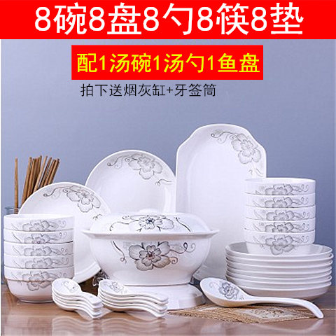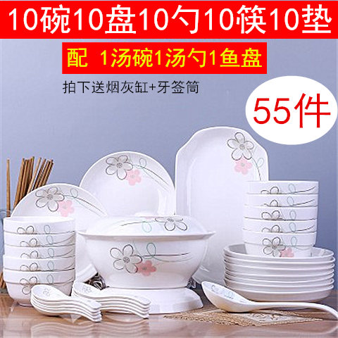 景德镇18件/55件组合陶瓷碗家用碗碟碗盘套装中式菜碟盘汤碗鱼盘