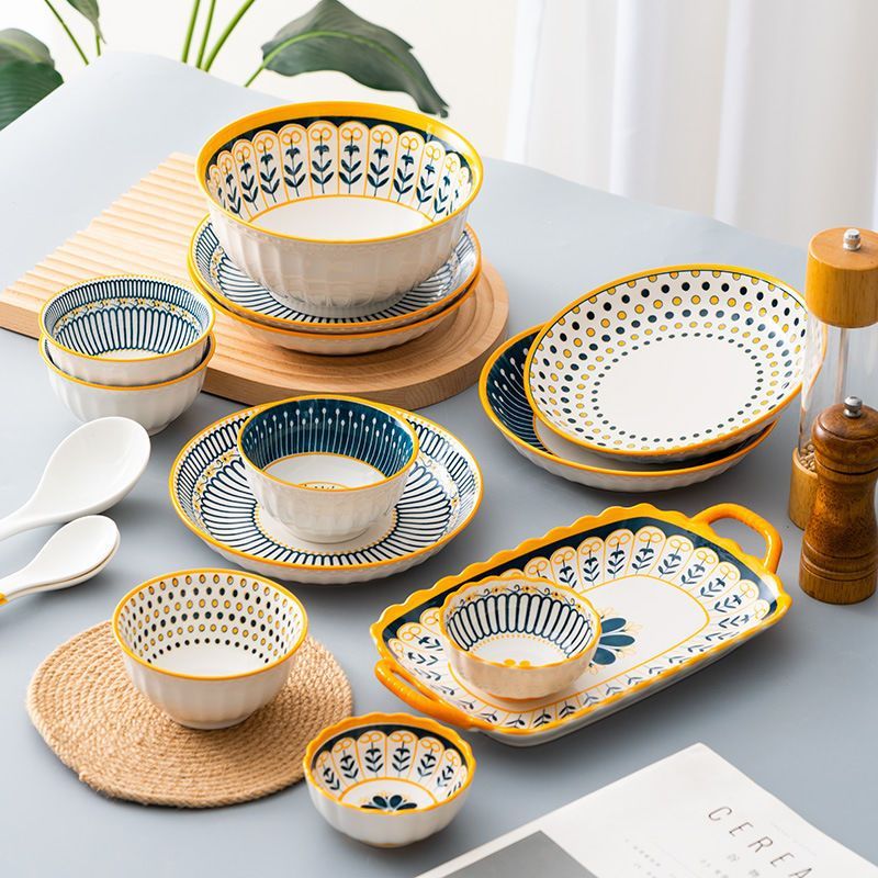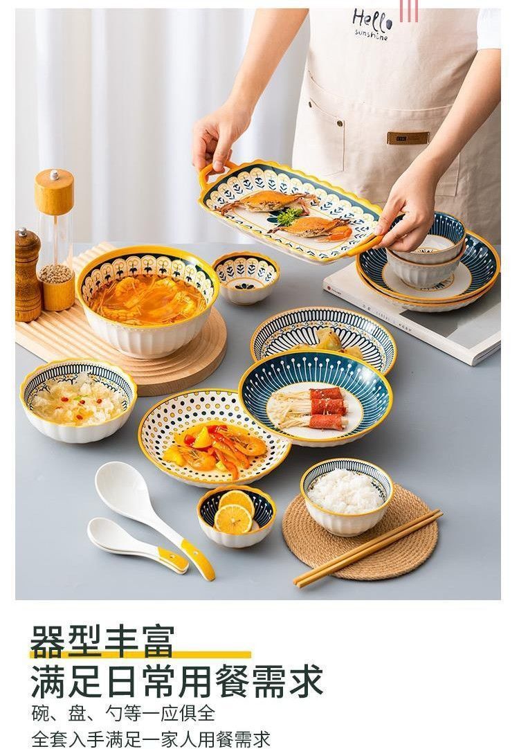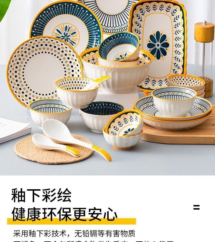 北欧风餐具碗家用吃饭陶瓷组合网红高颜值ins碗盘套装轻奢瓷乔迁