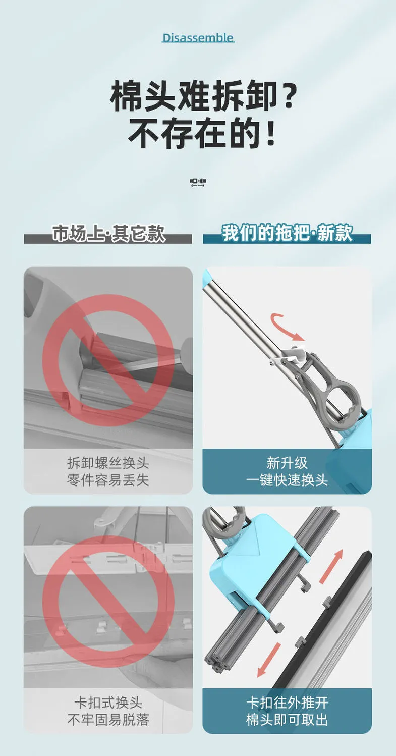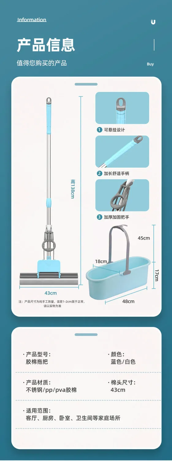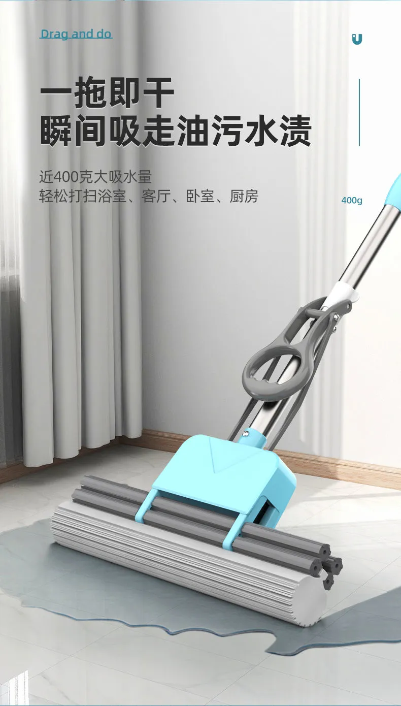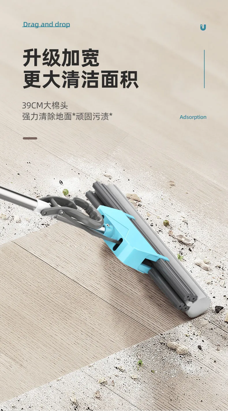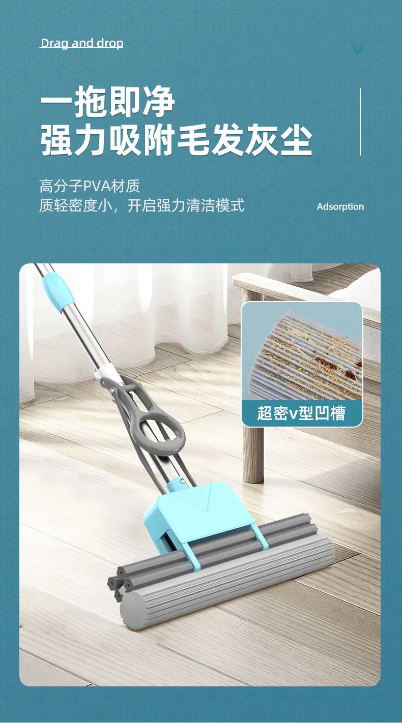 拖比特超大号吸水海绵懒人免手洗大直杆滚轮拖把拖地神器