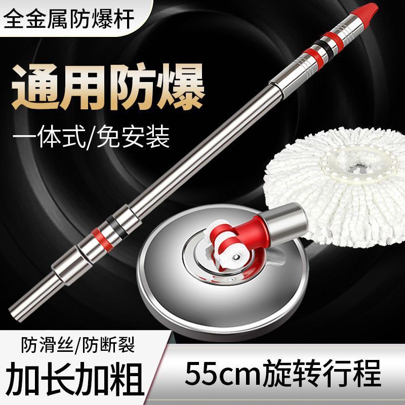 全不锈钢液压拖把杆通用加粗厚好神拖懒人拖把替换墩布头自动甩水