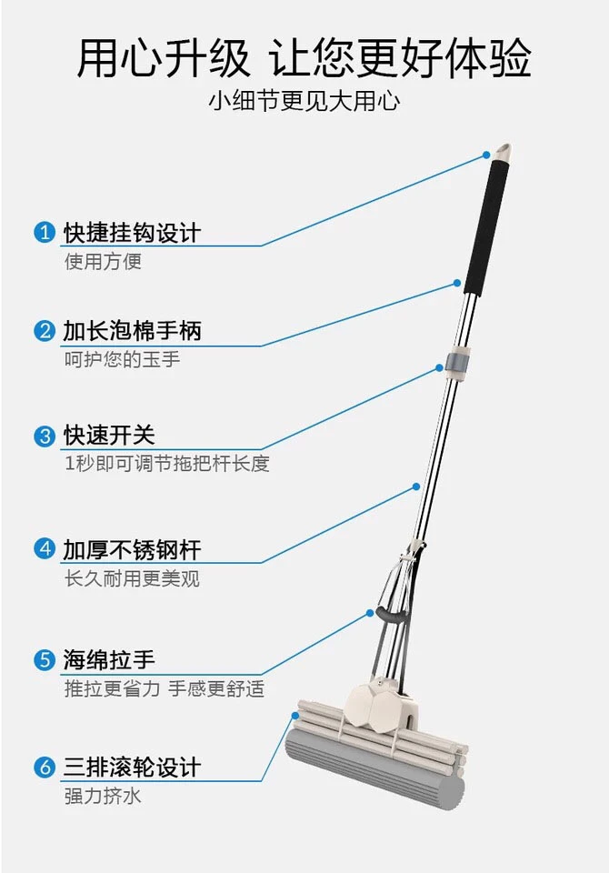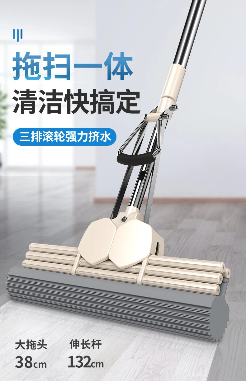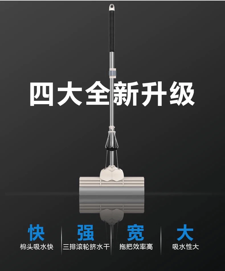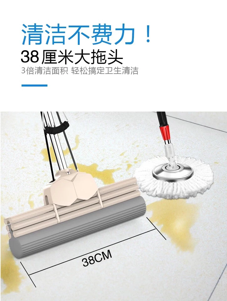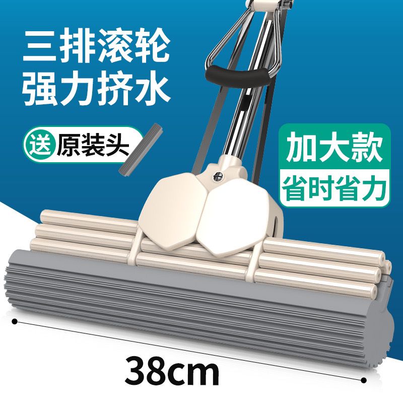 好太太拖把海绵免手洗滚轮式挤水家用胶棉吸水拖地拖把