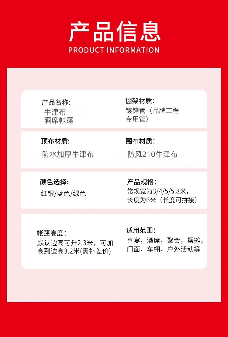 | 5 m wide * 8 m long [bold frame + water-repellent cloth +3 circumference]](5米宽*8米长【加粗架+防水布+3围】) | USD $346.35 | 99999 piece available |