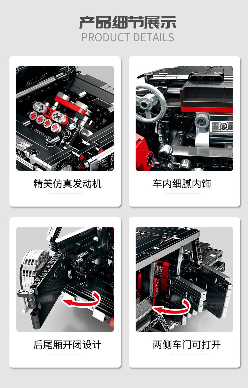 | mercedes-benz g500 building blocks + acrylic cover(奔驰G500积木+亚克力罩) | USD $39.3 | 99999 piece available |