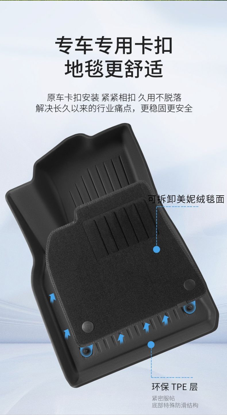 | [xuan kong black] tpe double-layer foot pad + minnie velvet + trunk mat(【玄空黑】TPE双层脚垫+美妮绒+后备箱垫) | USD $59.69 | 99999 piece available |