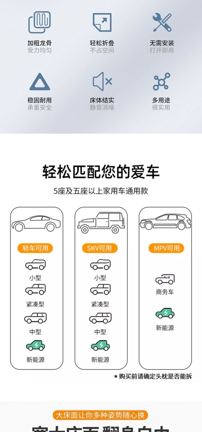 通用非充气垫改床车车载后排座折叠旅行床副驾驶睡觉车内折叠床