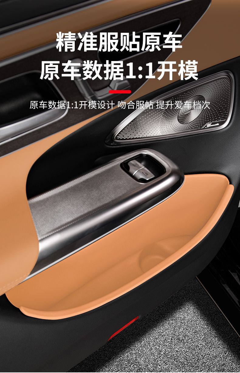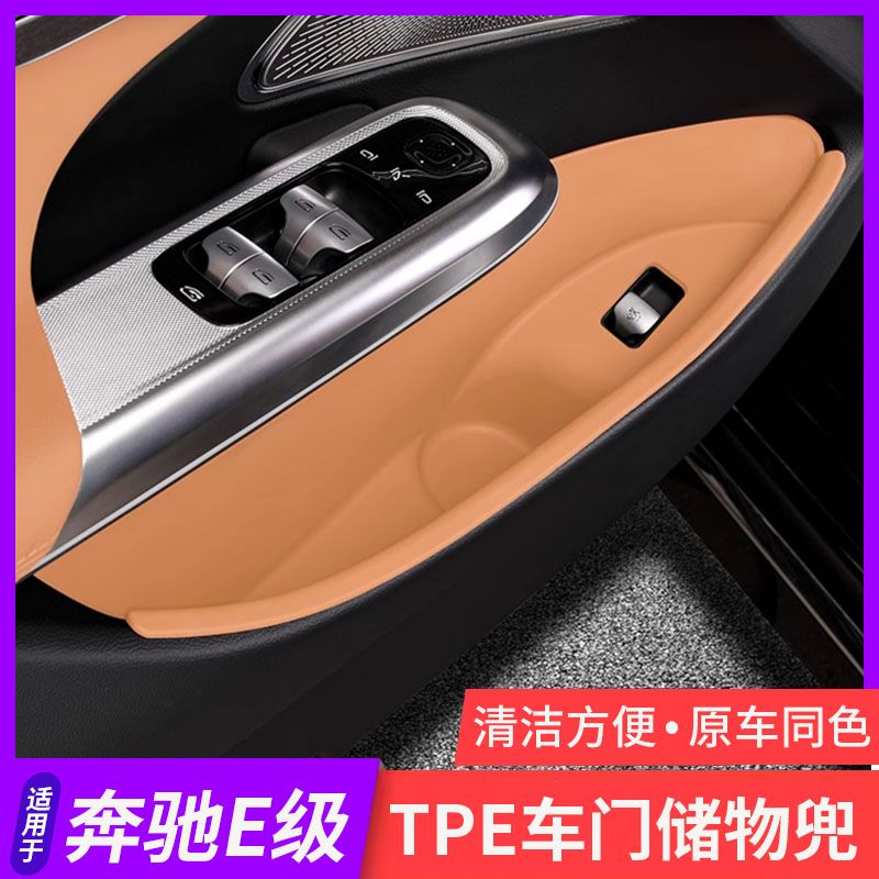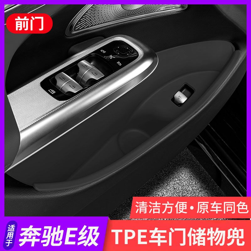 24款奔驰新E级TPE车门槽储物盒E300L收纳兜垫e260l车内改装饰配件