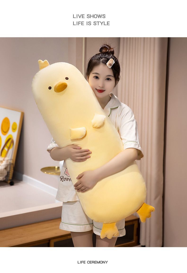 可爱小黄鸡陪睡抱枕长条夹腿大娃娃超软女生玩偶小鸡侧睡可拆洗