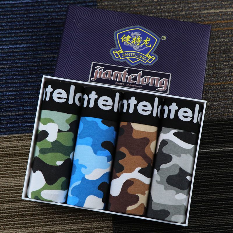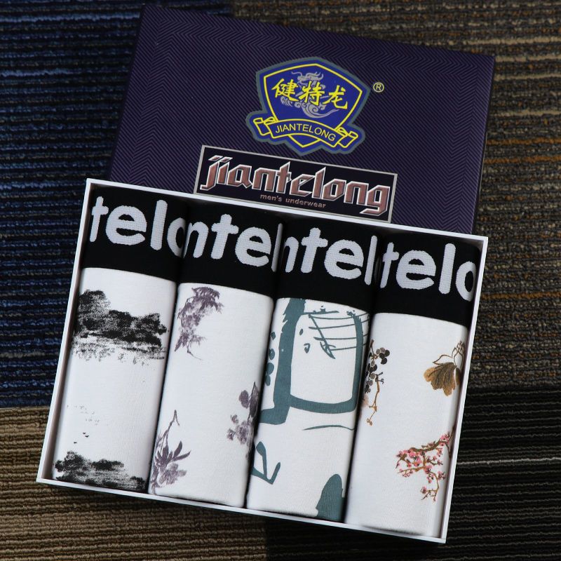 健特龙男士纯棉中年平角透气内裤吸汗宽松腰四角短裤头成人内裤男