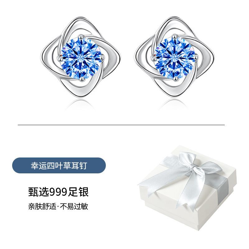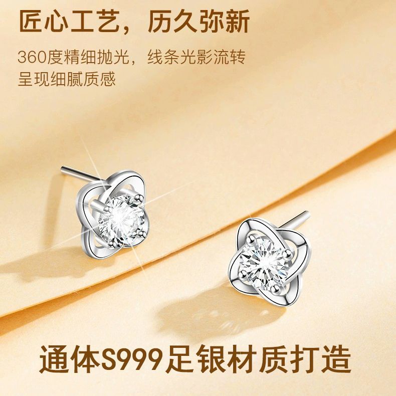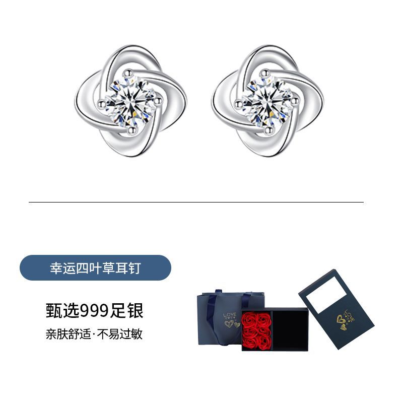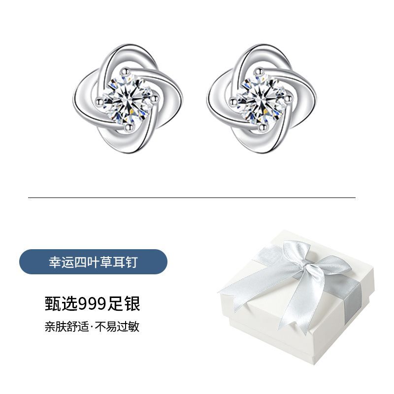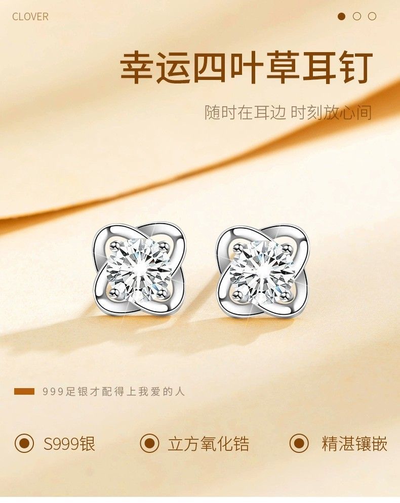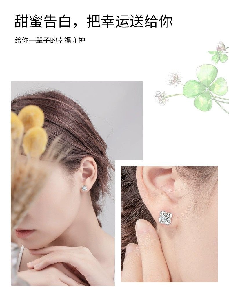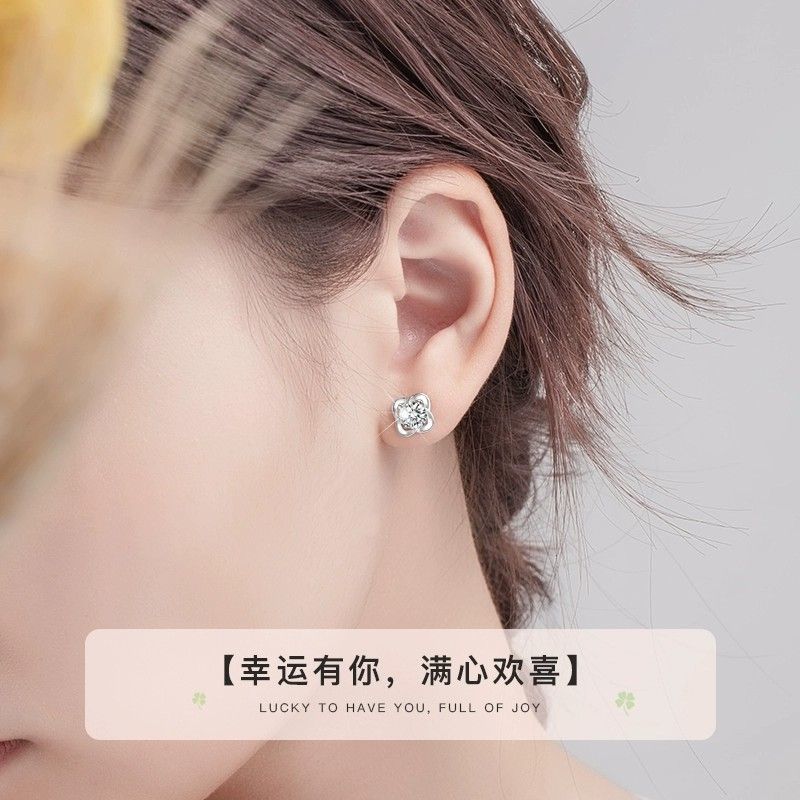 999纯银四叶草耳钉女ins小众轻奢时尚饰品学生镶钻简约耳饰养耳洞