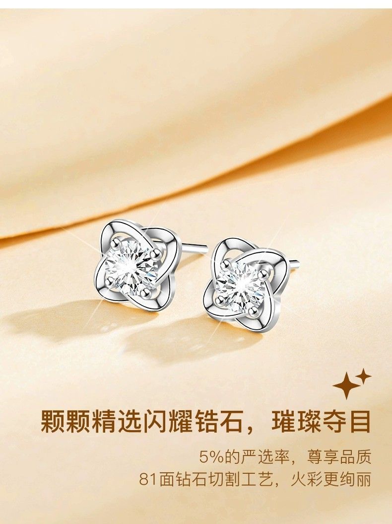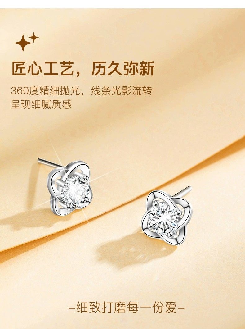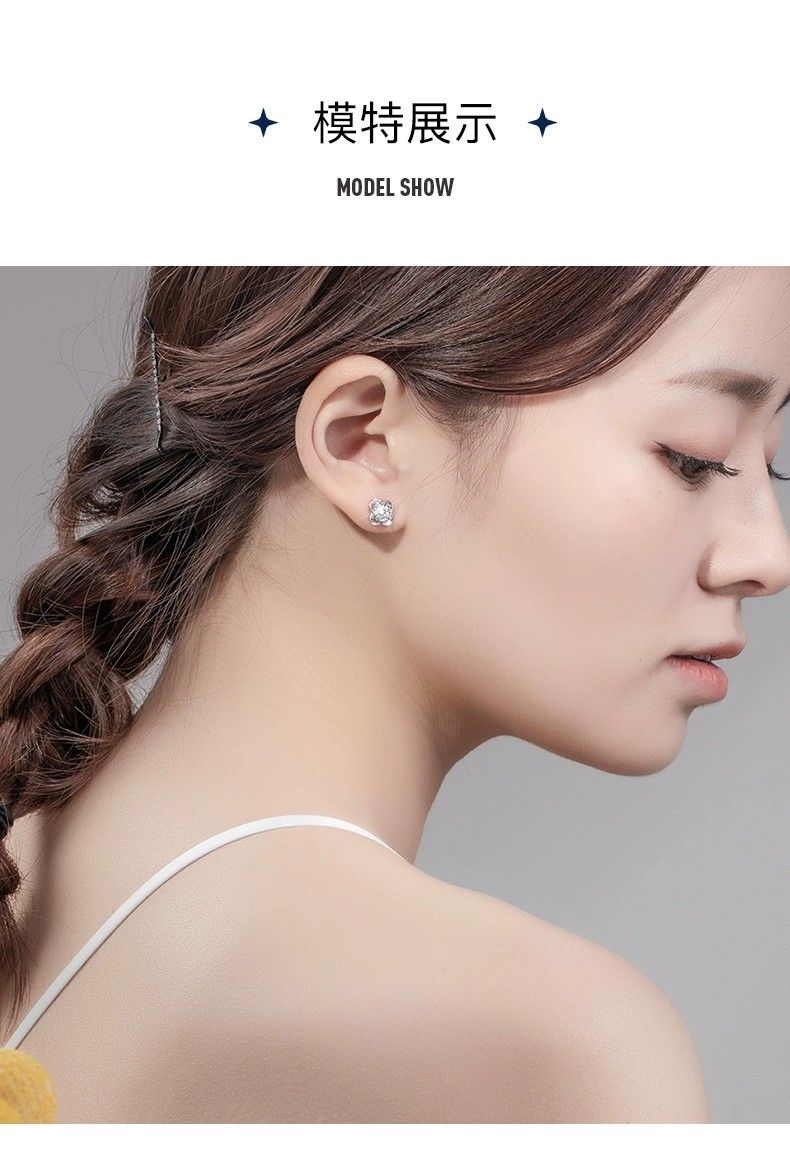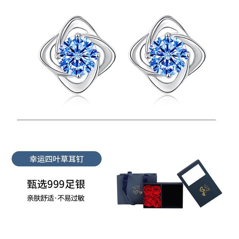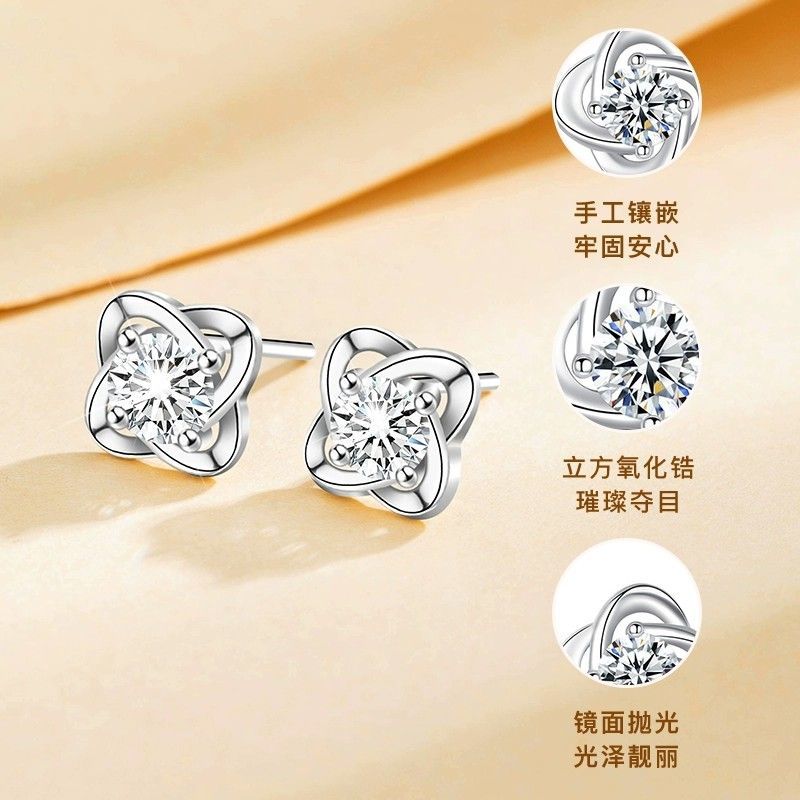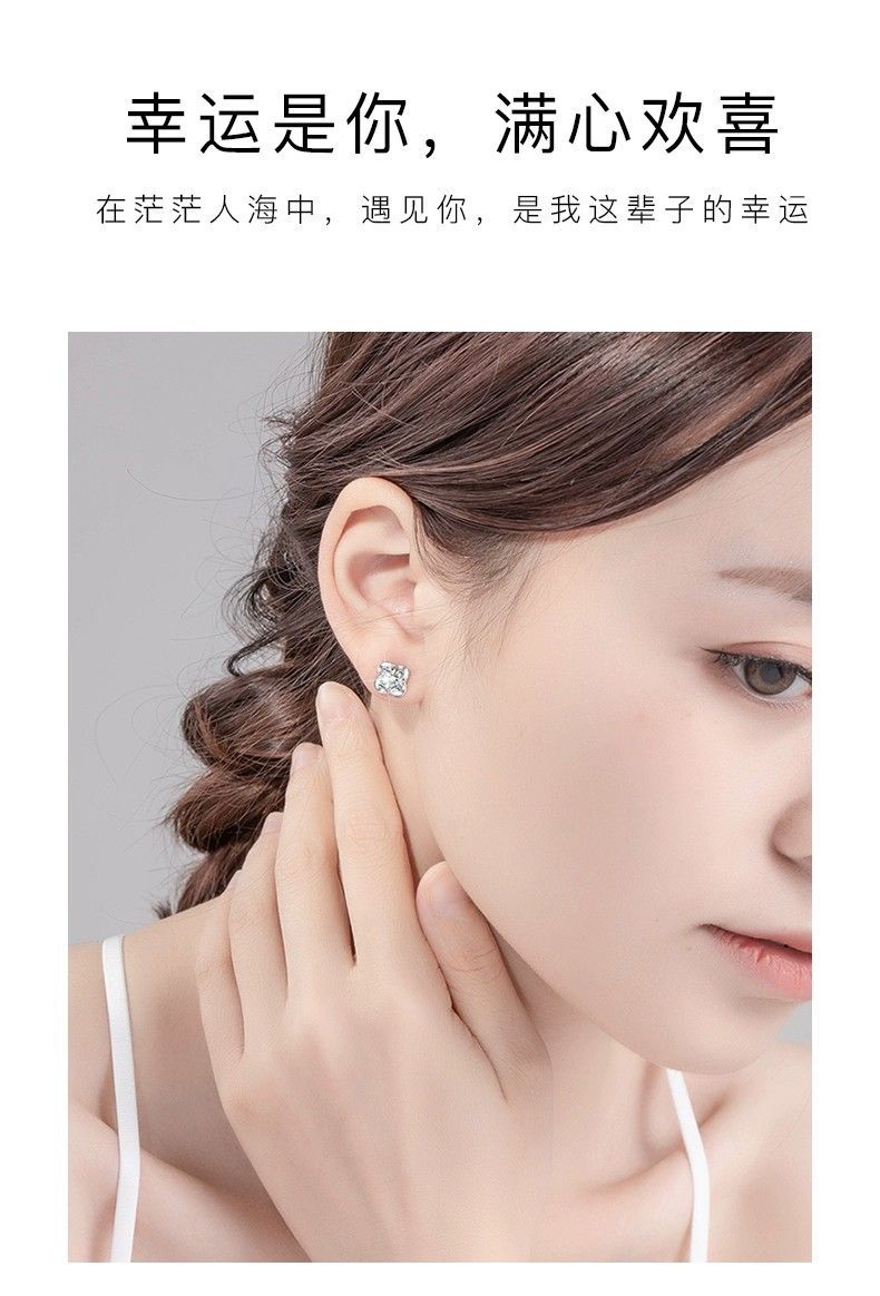 999纯银四叶草耳钉女ins小众轻奢时尚饰品学生镶钻简约耳饰养耳洞