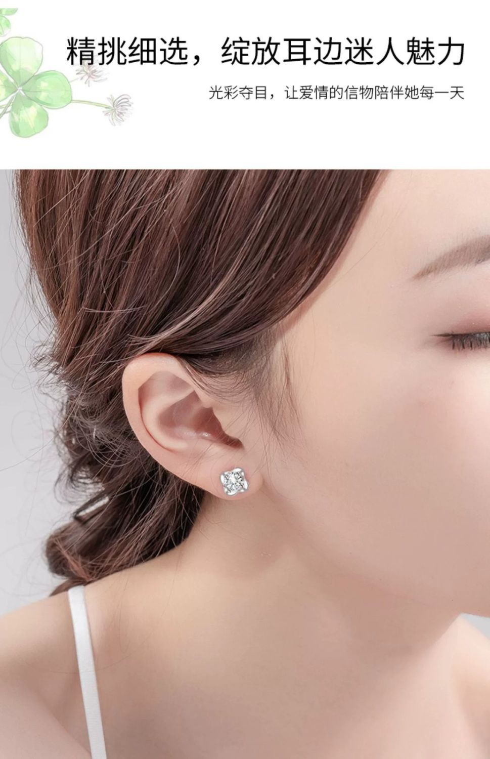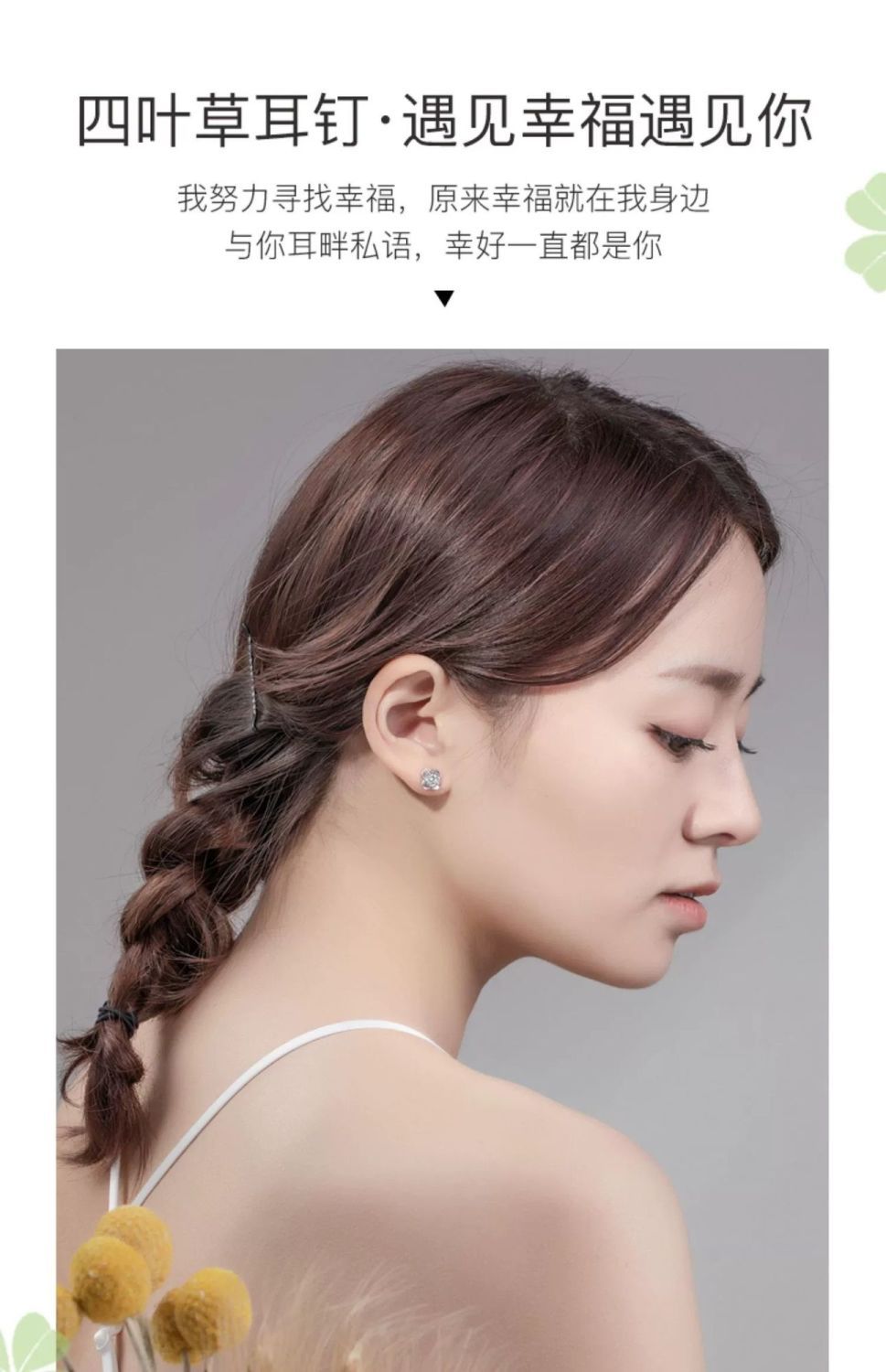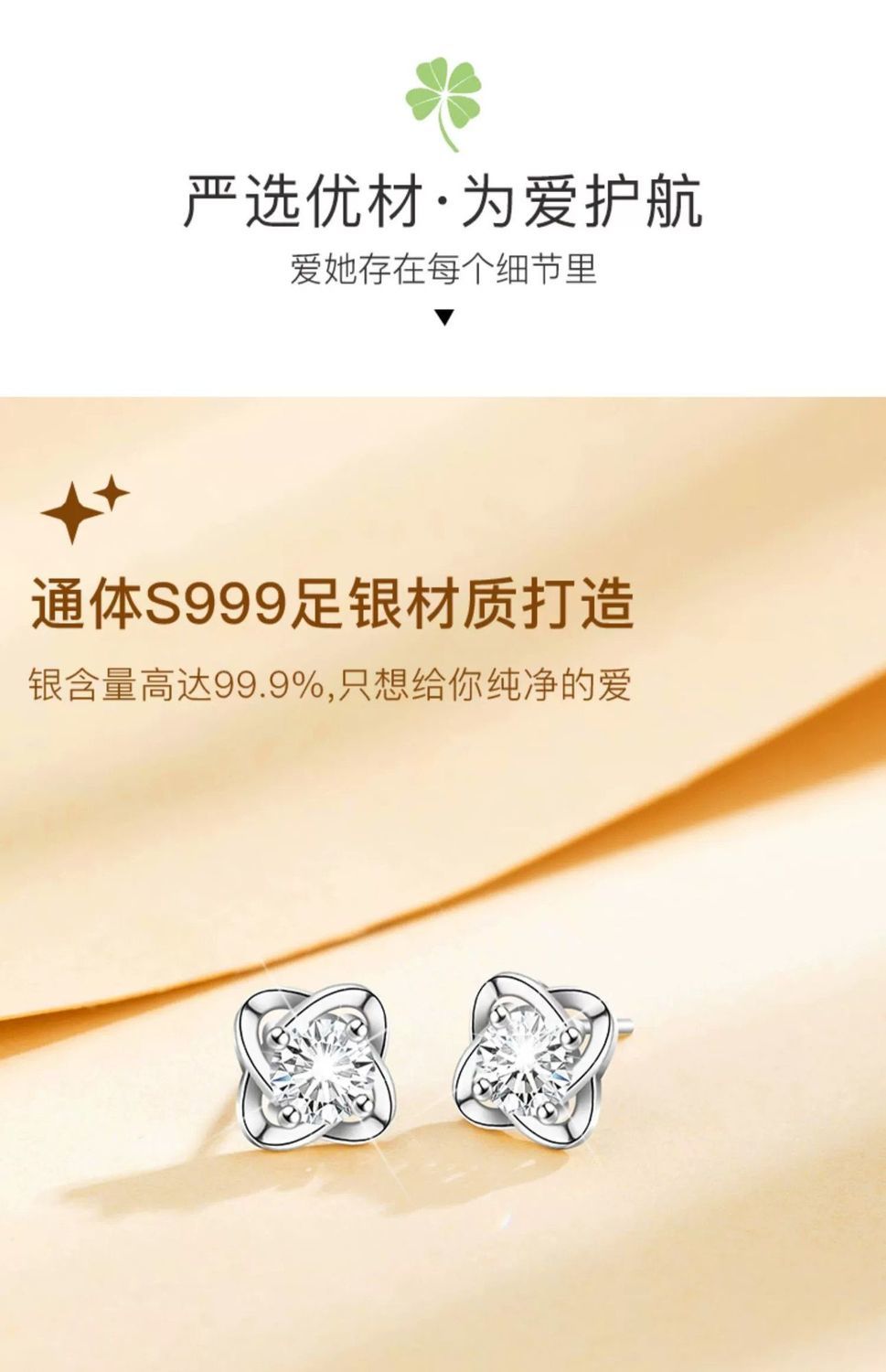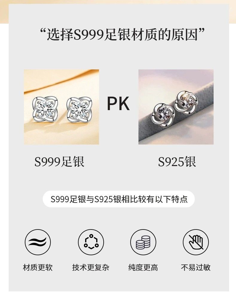 999纯银四叶草耳钉女ins小众轻奢时尚饰品学生镶钻简约耳饰养耳洞