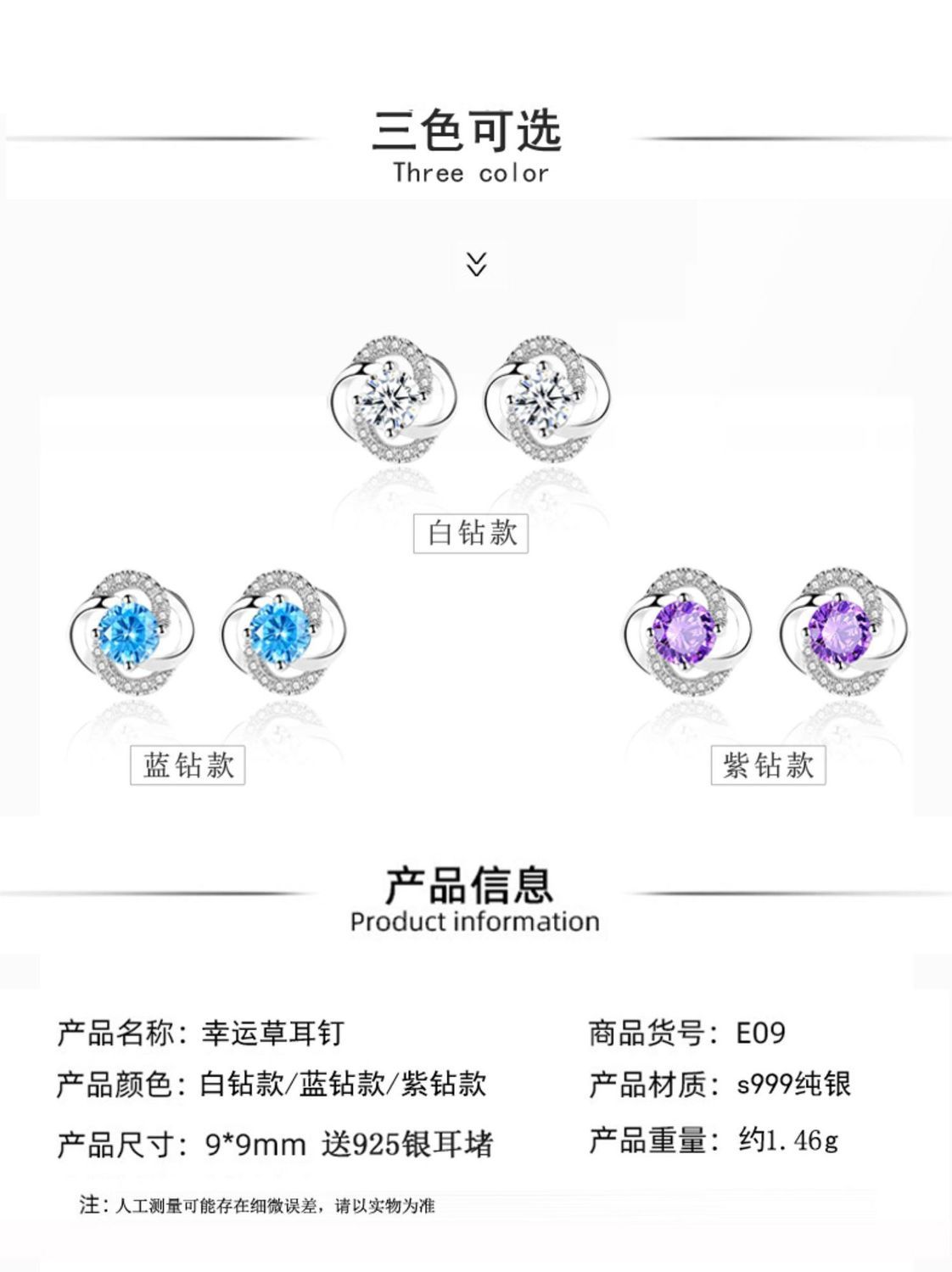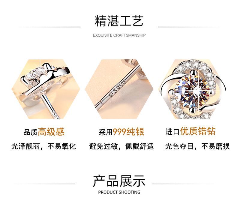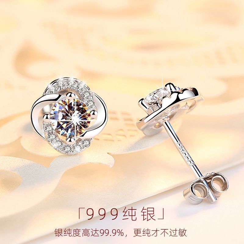 999纯银耳钉女2024新款不过敏耳环气质足银女朋友情人节生日礼物