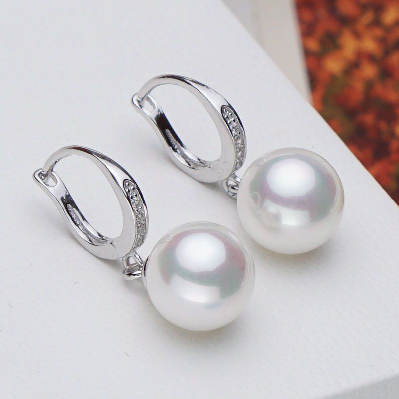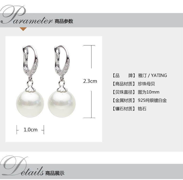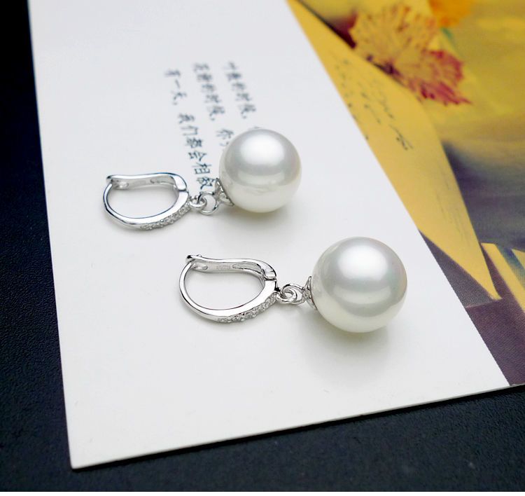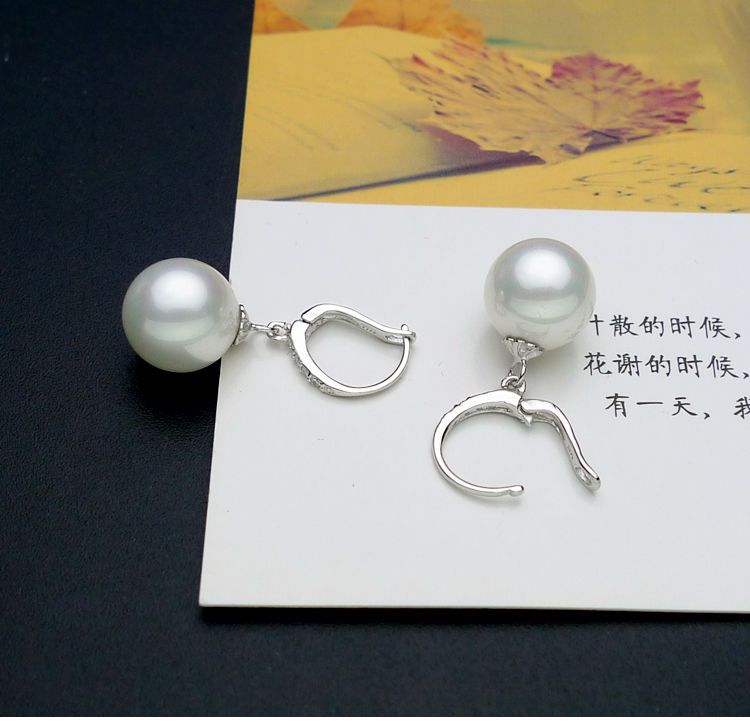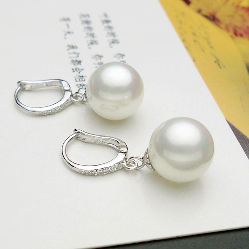 925纯银韩国气质贝珠母贝珍珠耳环耳圈女耳饰品防过敏耳坠