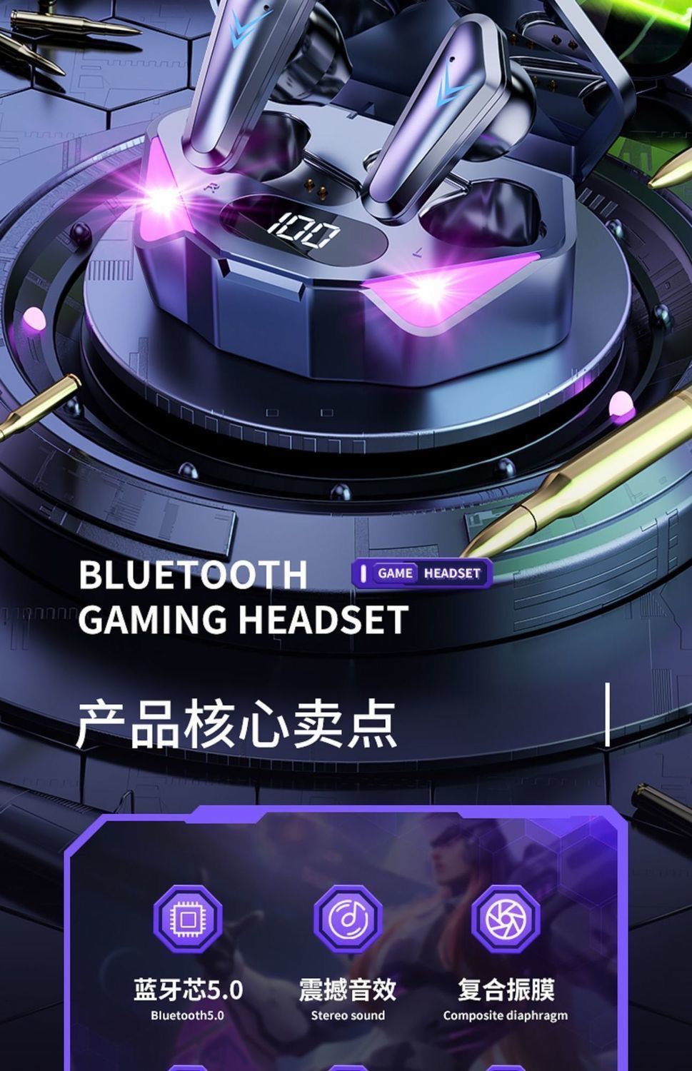 【小杨哥推荐】游戏吃鸡耳机蓝牙无线辨位无感延迟安卓华为通用