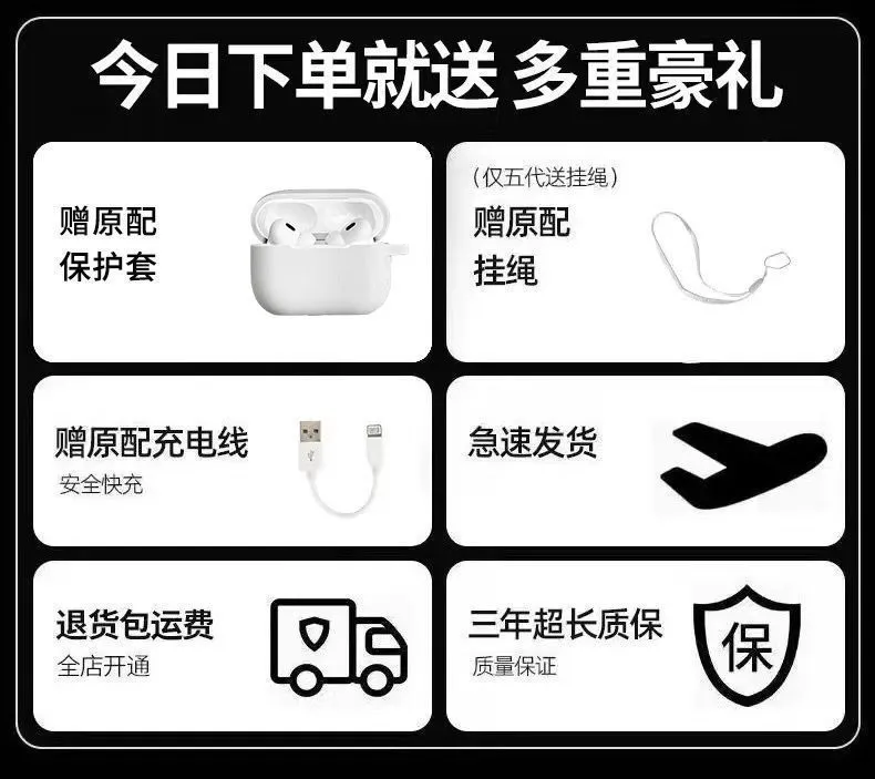 华强北2024新款五代蓝牙耳机air5四代降噪高音质pro2适用苹果安卓
