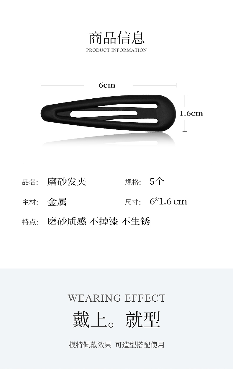 M2KA磨砂发夹头饰女黑色夹子边夹刘海夹bb夹简约侧边发卡子水滴夹