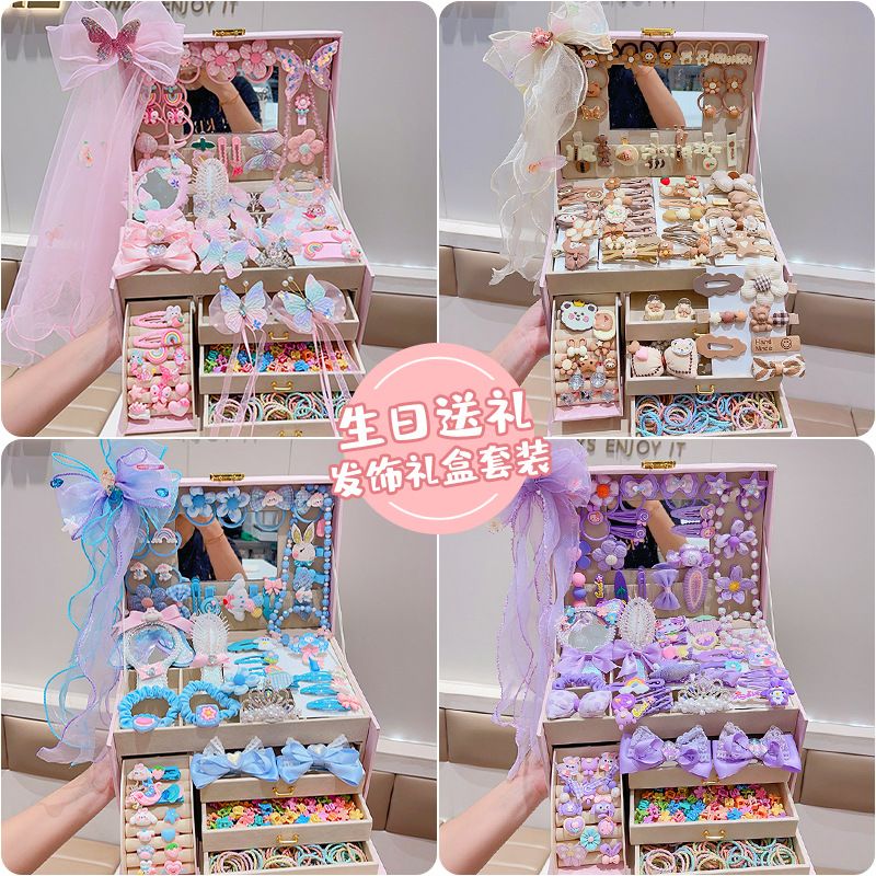 儿童发饰礼盒套装宝宝发夹可爱小公主首饰盒生日礼物发绳皮筋头饰