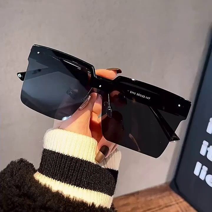 新款偏光个性半框男墨镜帅气高级感太阳眼镜女圆长脸时尚大框拍照