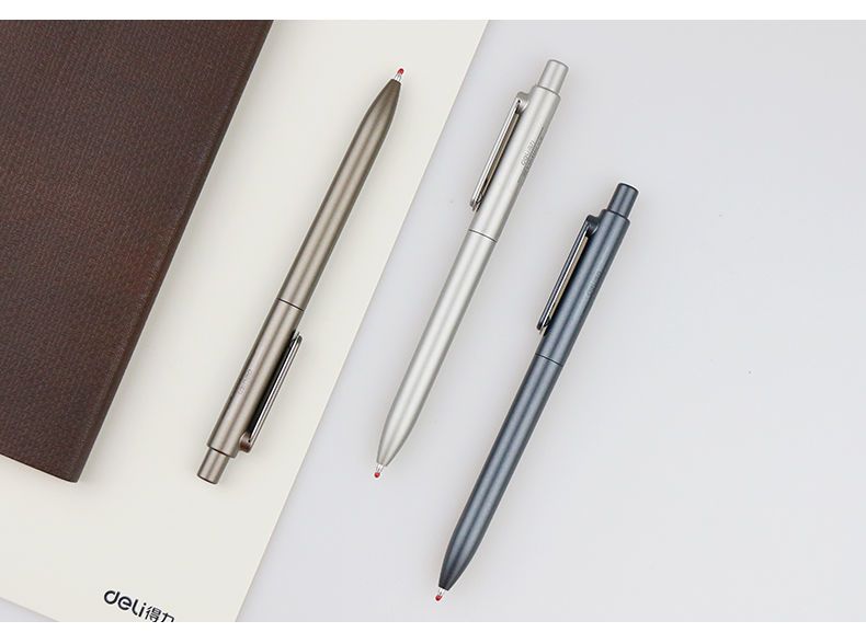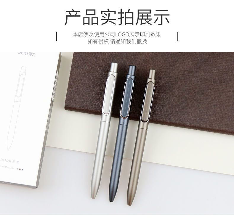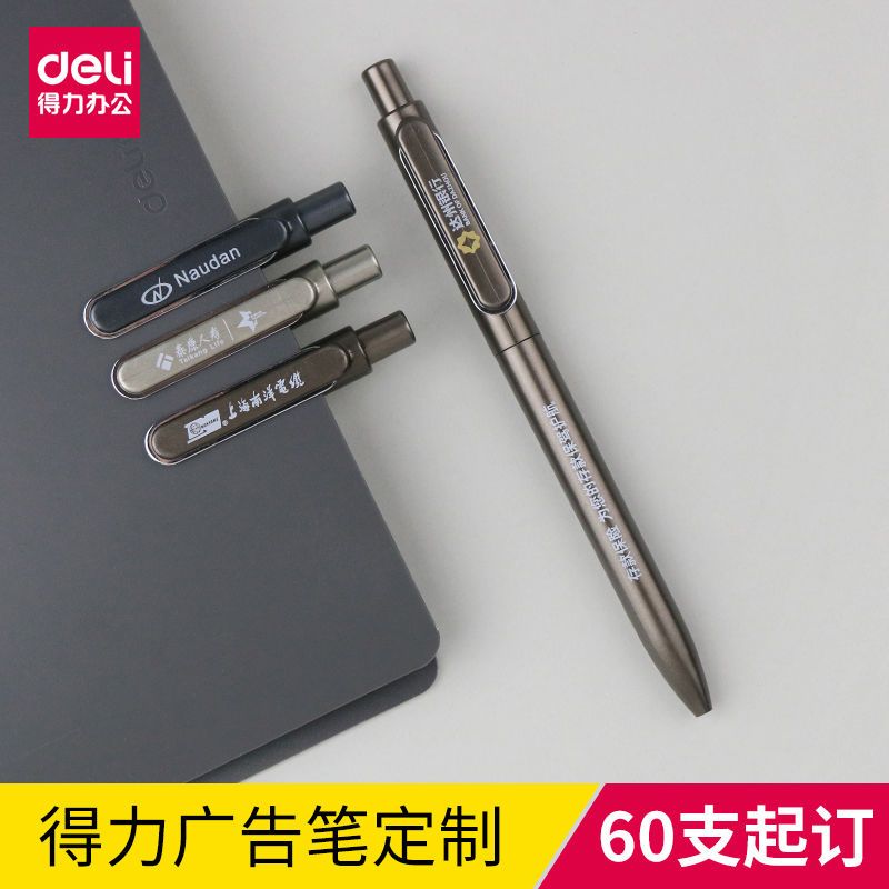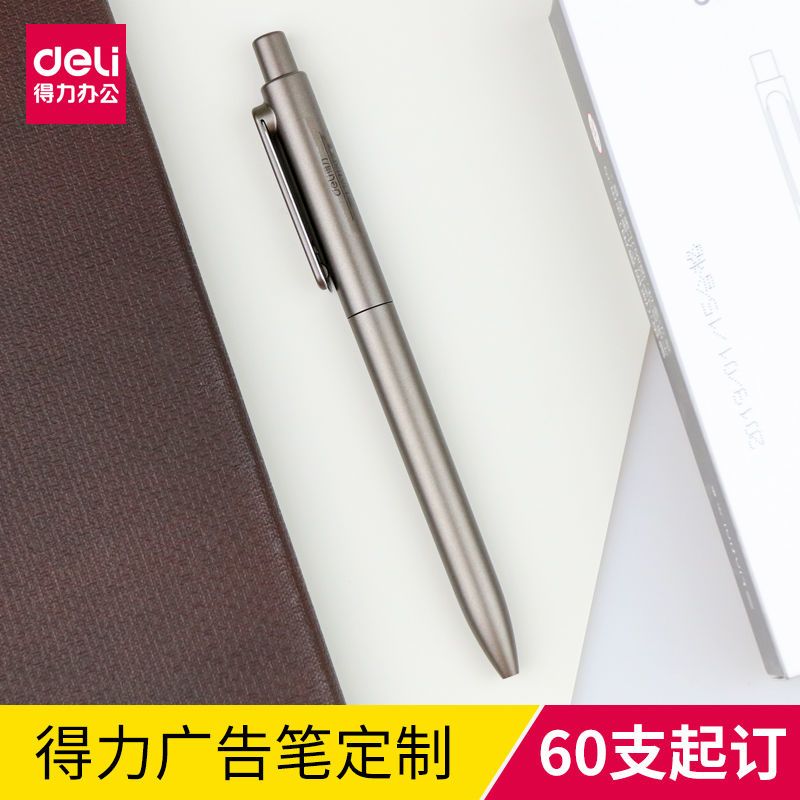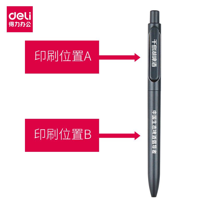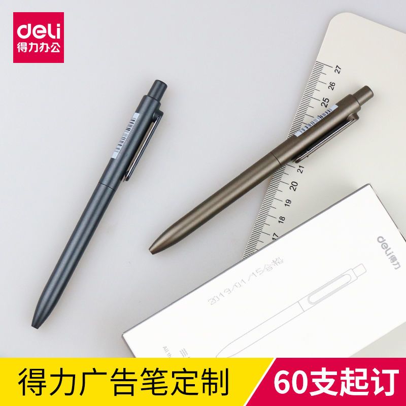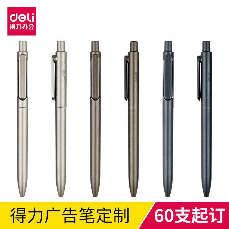 得力高颜值按动中性笔刻字学生办公签字0.5mm简约商务定制笔logo
