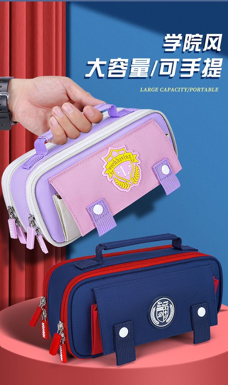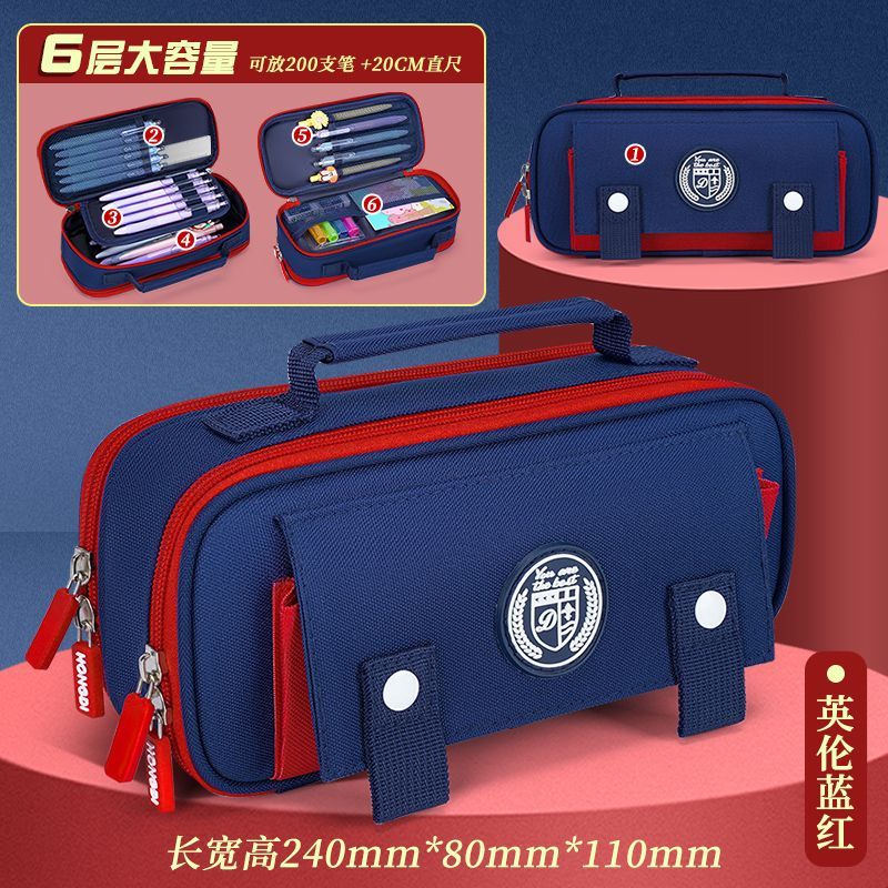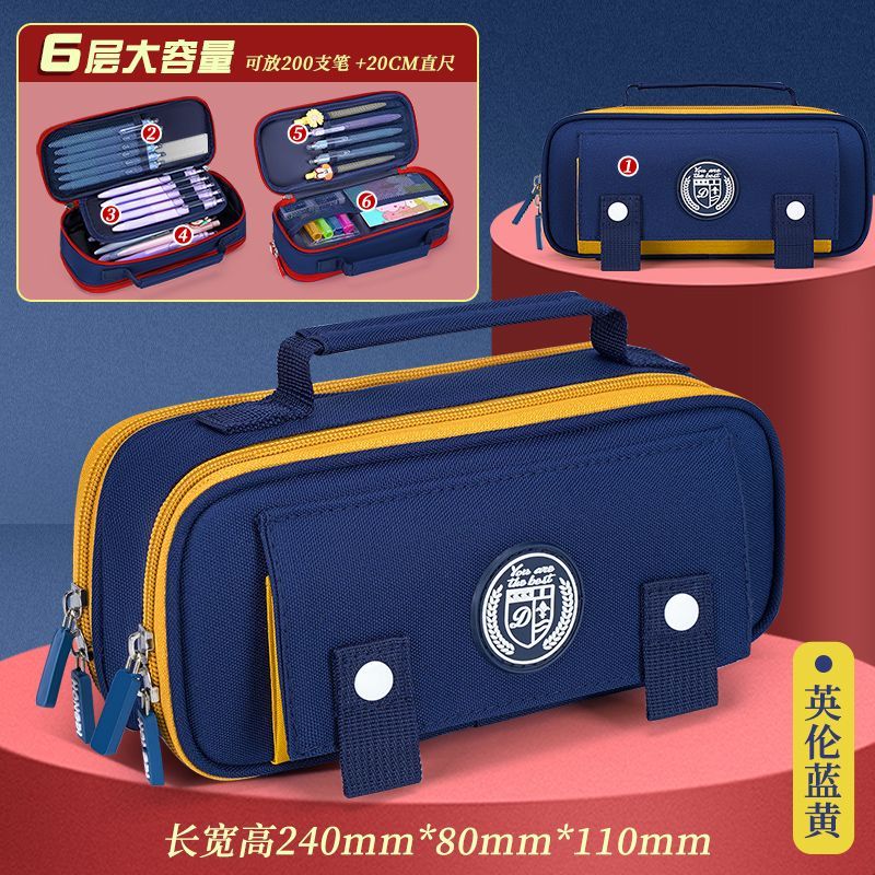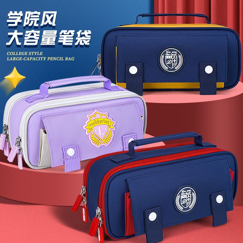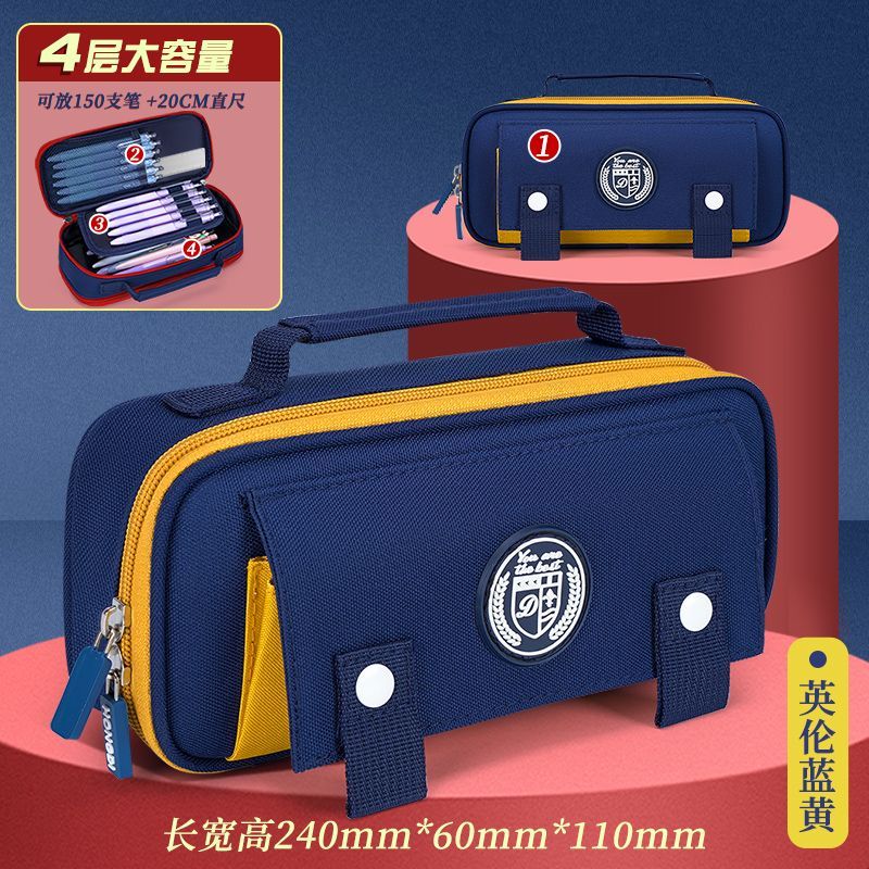 英伦中小学男生大容量笔袋多层文具盒耐脏高颜值简约铅笔女孩新款