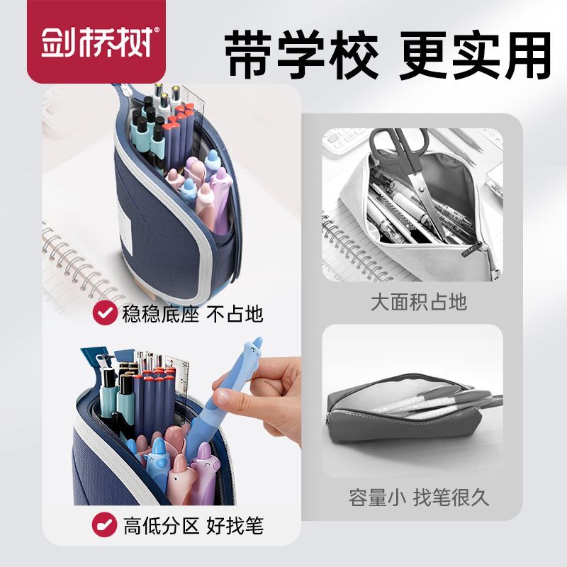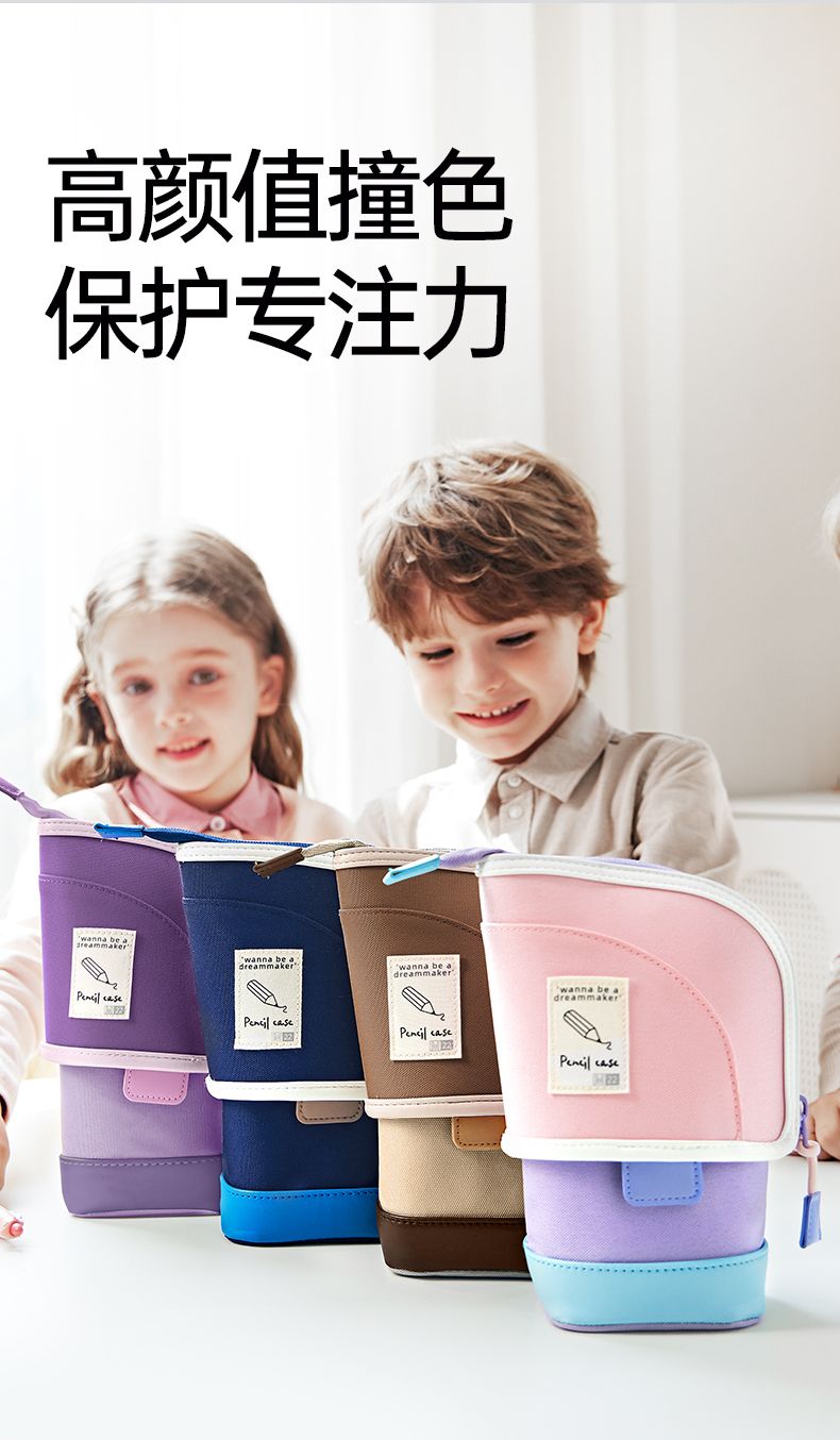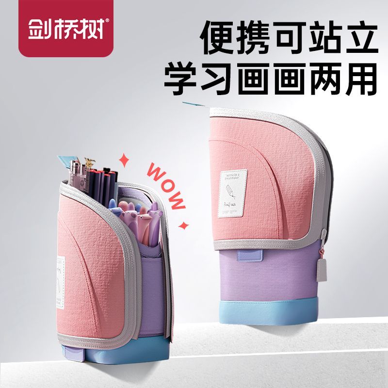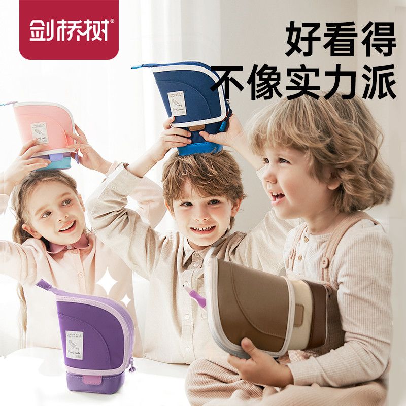 剑桥树立式笔袋女小学生可伸缩二合一笔筒男大容量儿童铅笔文具盒
