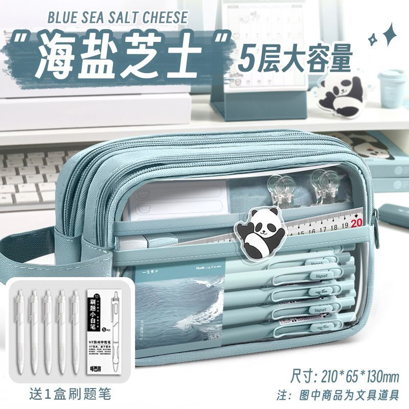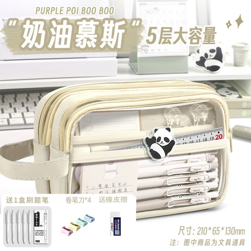 5层透明笔袋初高中小学生文具盒ins日系大容高颜值女生小学生简约