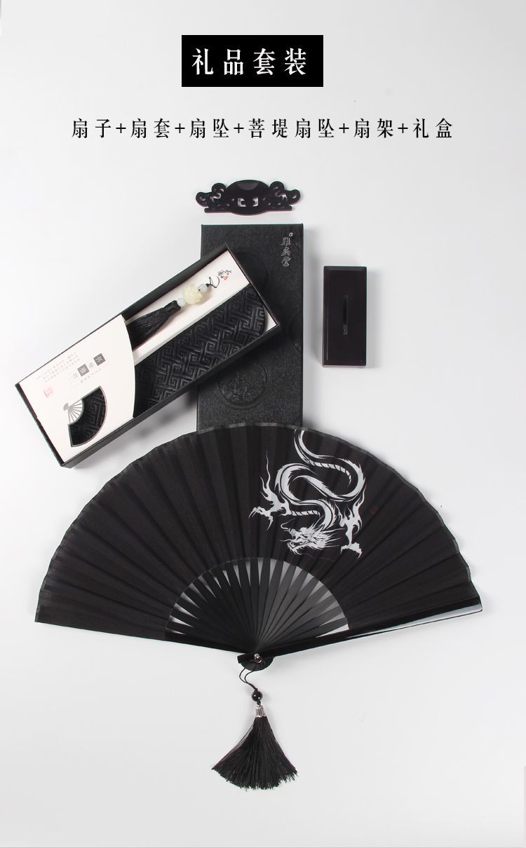 中国风男生霸气龙折扇古风流苏随身便携折叠小扇女式汉服扇子夏天