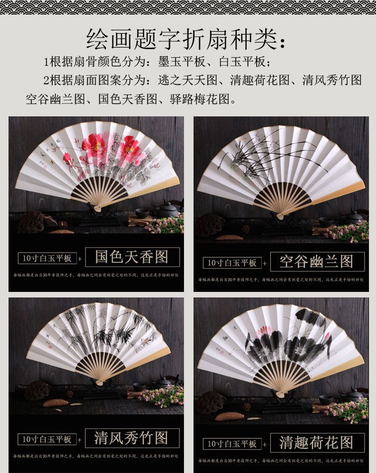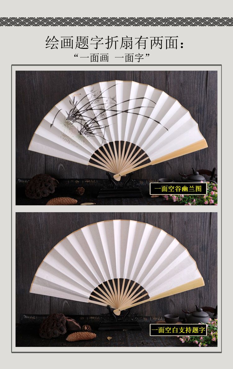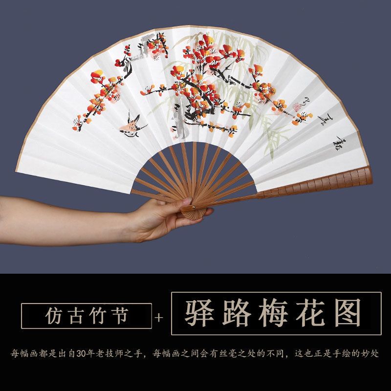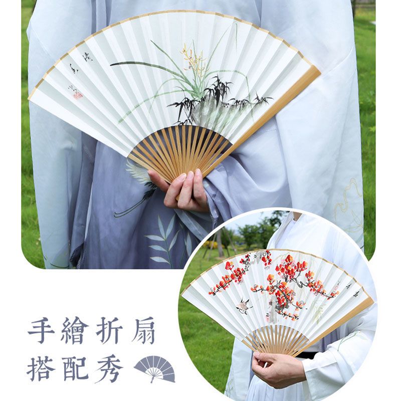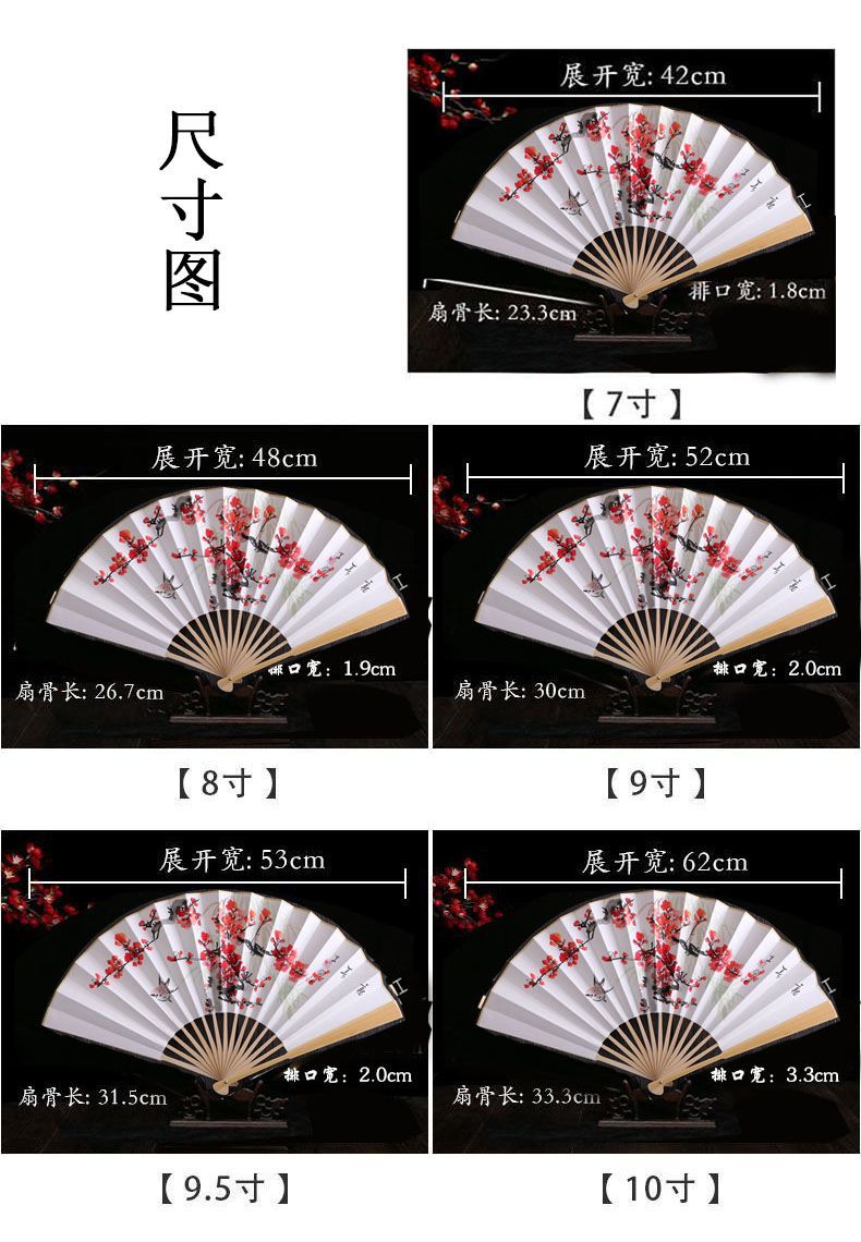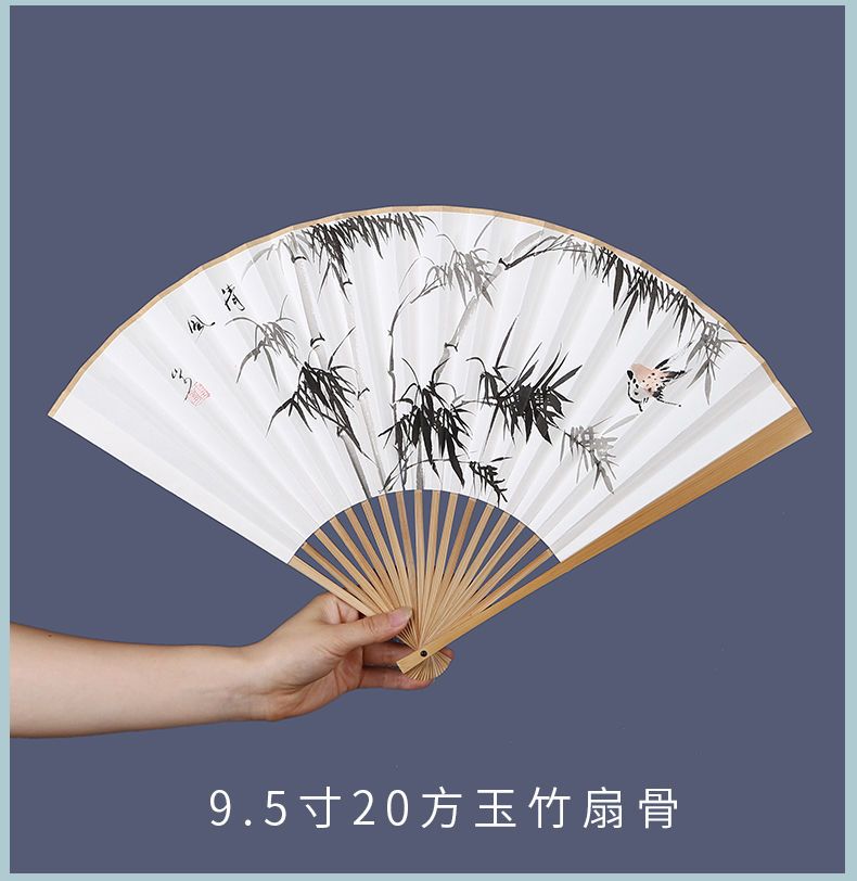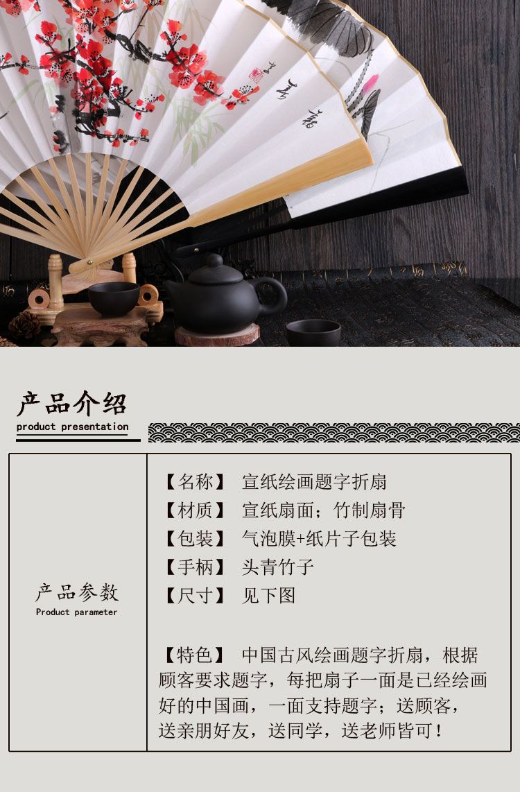手绘宣纸折扇7-10寸手写绘画书法日式扇子古风文玩梅兰竹菊扇帅气