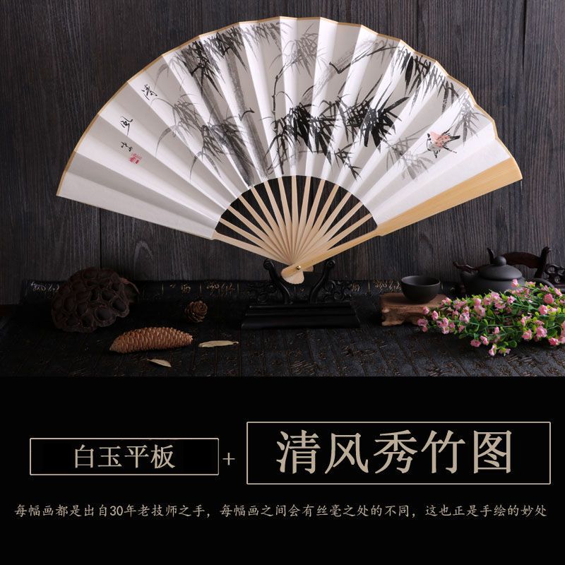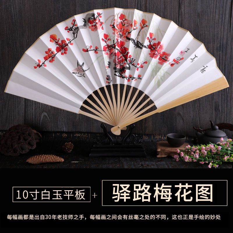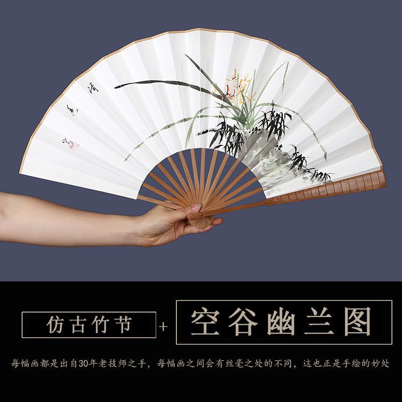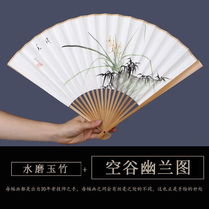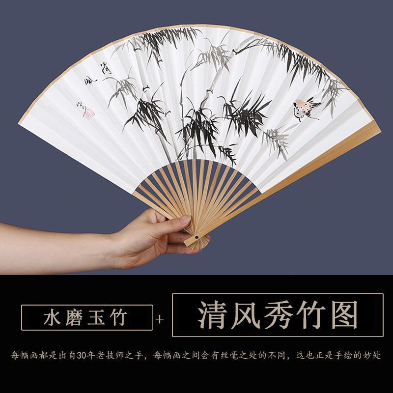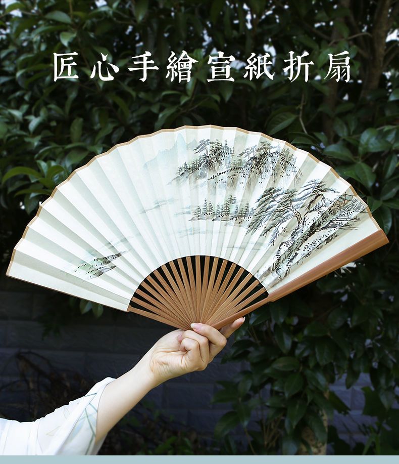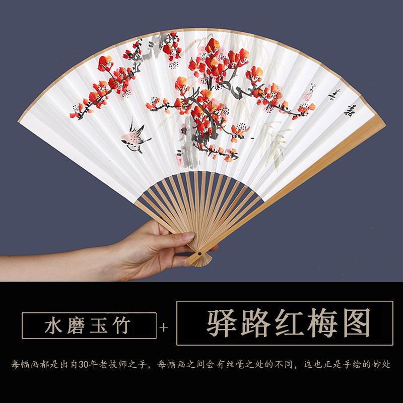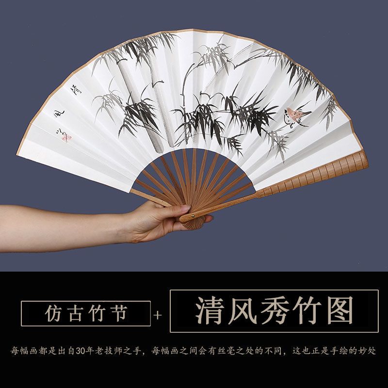 手绘宣纸折扇7-10寸手写绘画书法日式扇子古风文玩梅兰竹菊扇帅气