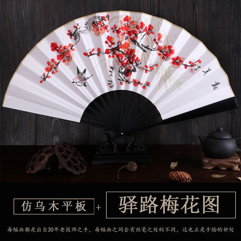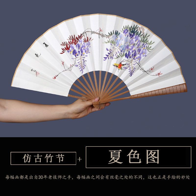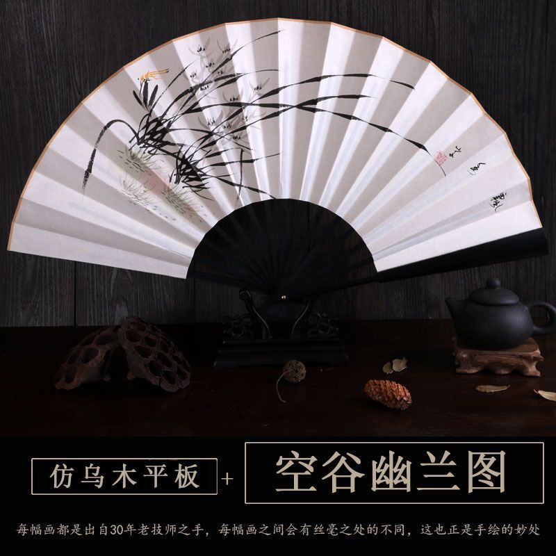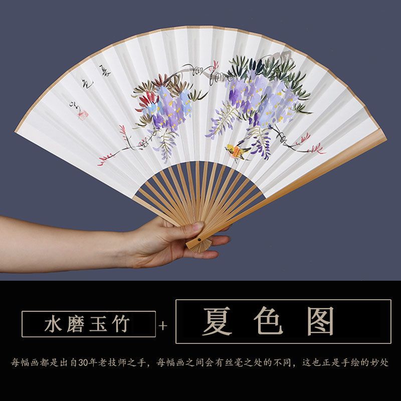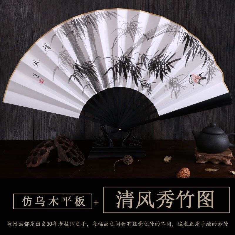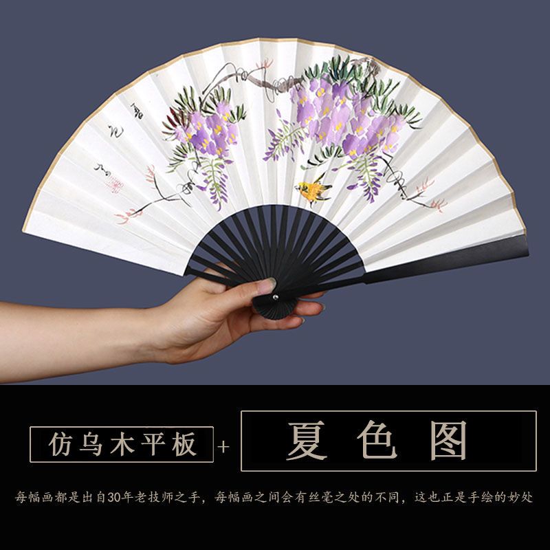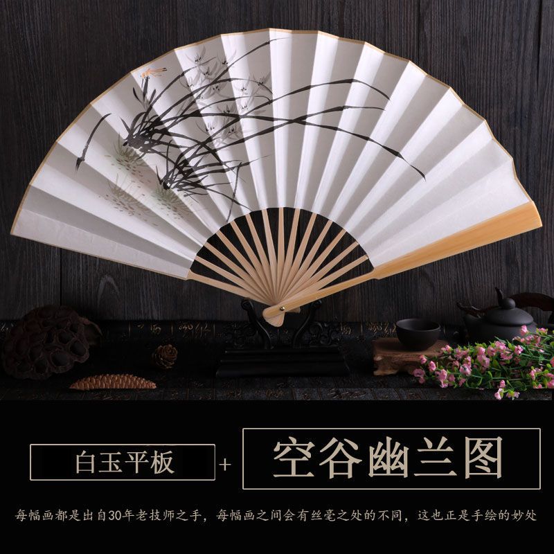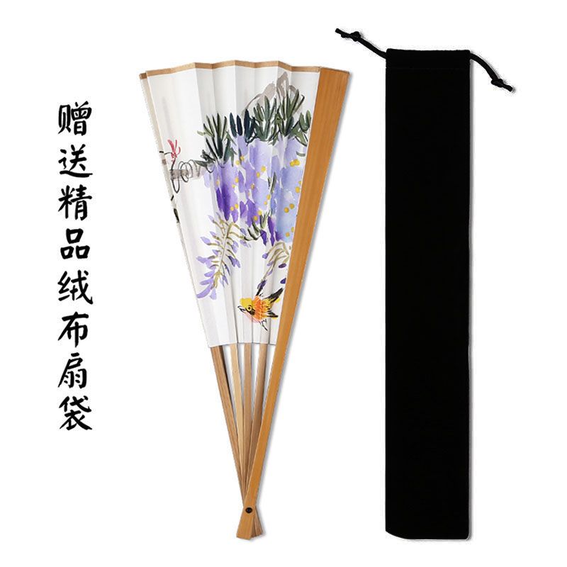 手绘宣纸折扇7-10寸手写绘画书法日式扇子古风文玩梅兰竹菊扇帅气