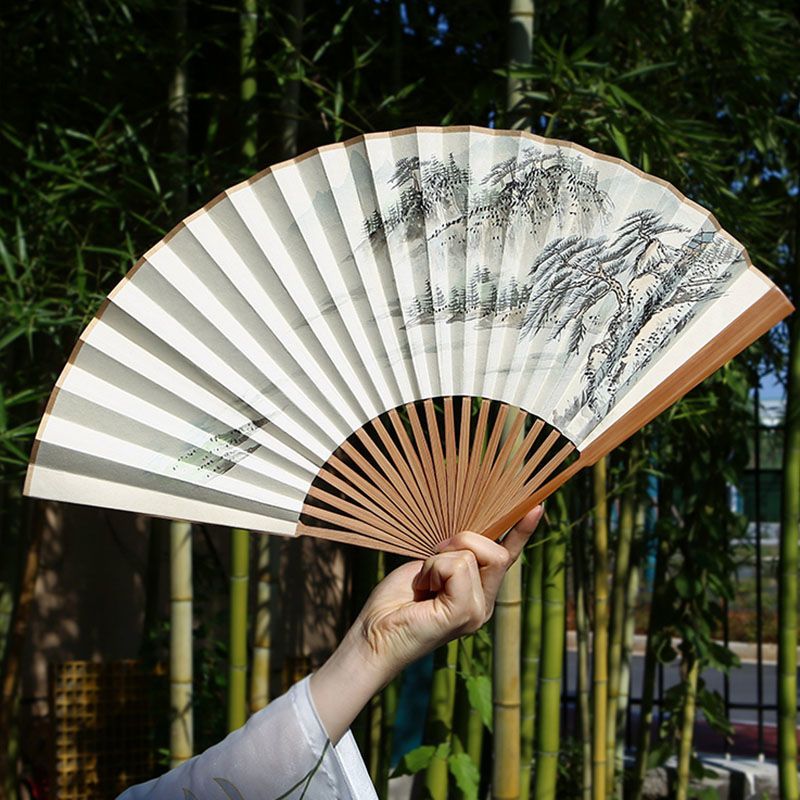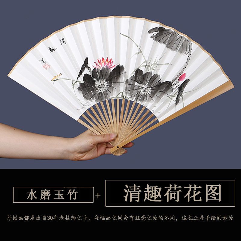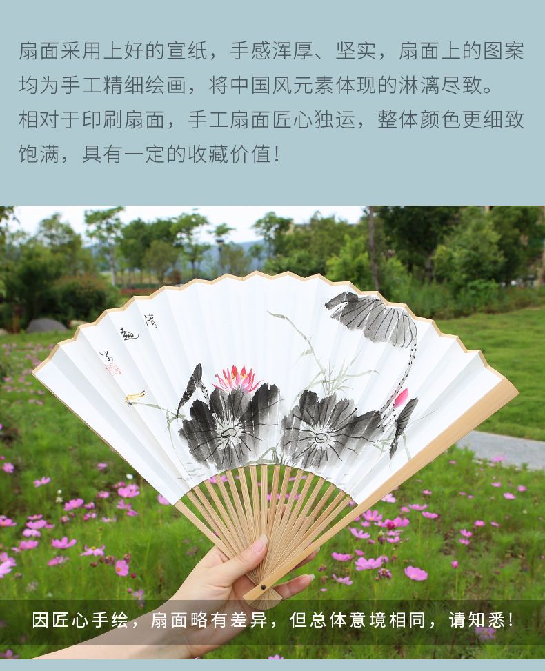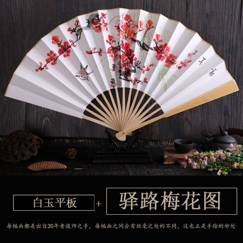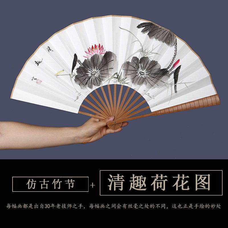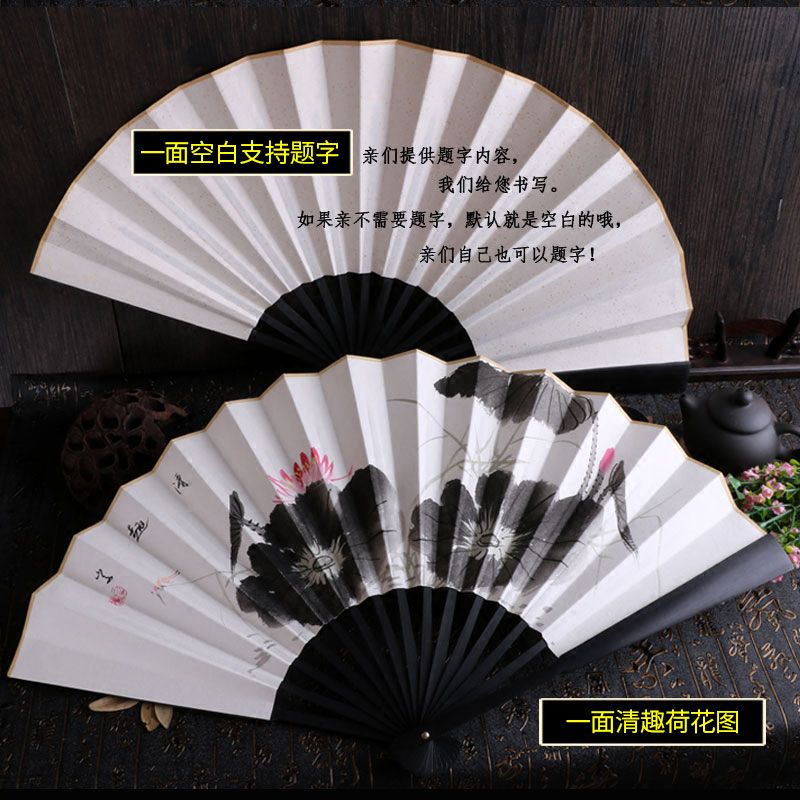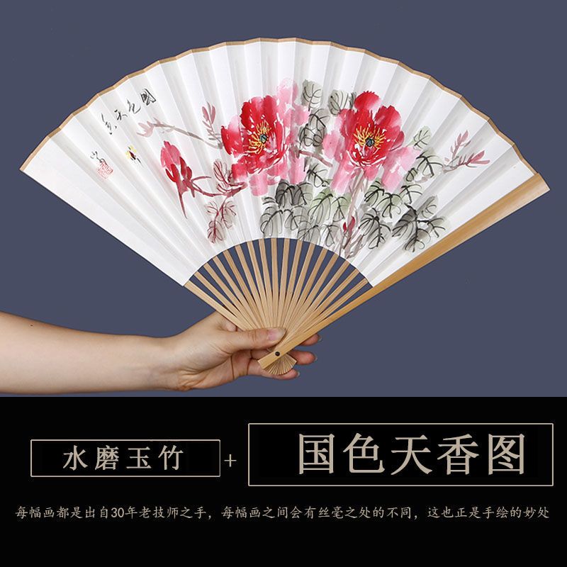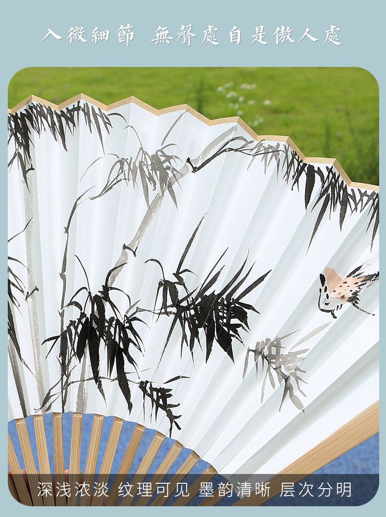 手绘宣纸折扇7-10寸手写绘画书法日式扇子古风文玩梅兰竹菊扇帅气